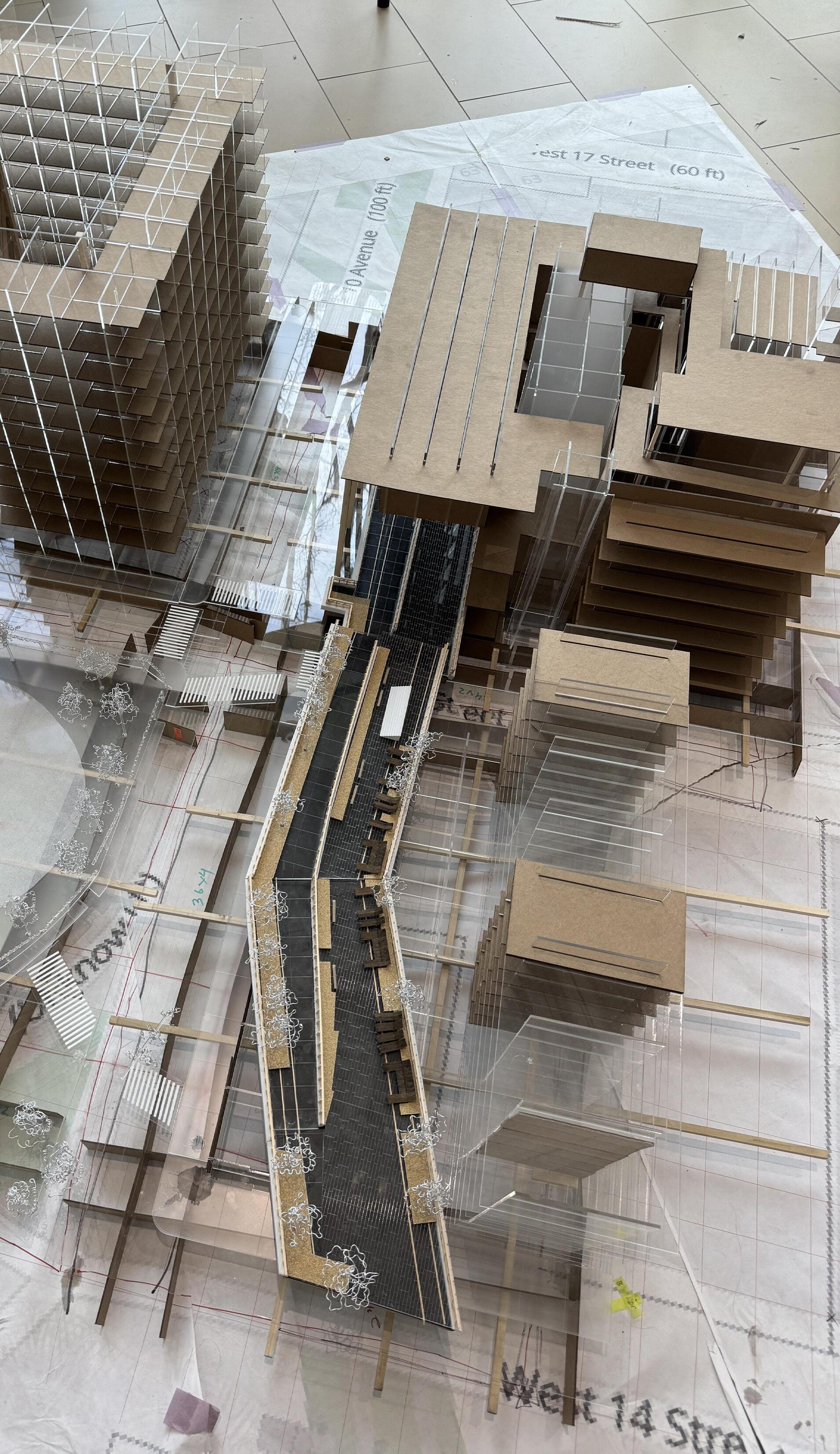 For this group project, we designed a 6-foot model inspired by our weekend visit to the NYC High Line. Through a combination of site analysis, diagramming, and creative imagination, we explored the unique urban environment and its relationship with nature. The model captures the essence of the High Line’s elevated park, incorporating green spaces, pathways, and surrounding architecture. Through collaborative effort and cafeful craftsmanship, we created a visually striking model that reflects the dynamic interplay between urbanism and nature in this iconic space.