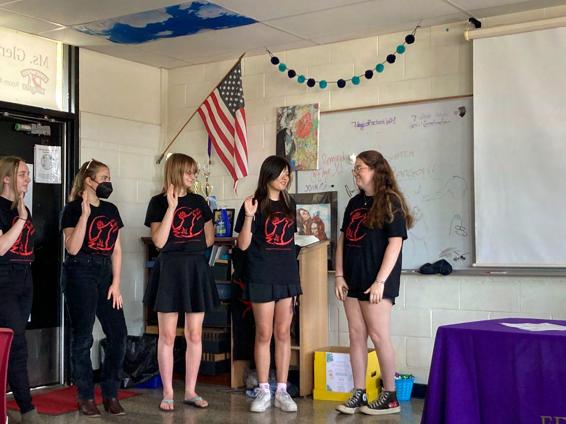 2023 - 2024 Edgewood JCL President, Danielle Toland, swears in the 2023-2024 officers: Leanne England, Wisper Reynolds, Katherine Hammond, and Lily Whiting.