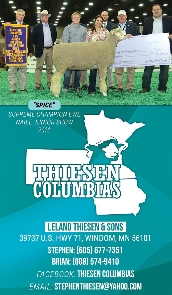 Happy New Year, Columbia breeders! The Junior Board put in the work in 2023, and nothing is going to change in 2024. After a successful North American International Livestock Expo (NAILE), my fellow board members and I have been hard at work planning for the upcoming National Junior Show this summer. We would like to thank everyone who has made monetary donations and helped organize activities so far. We could not do what we do without your support! With that being said, we are in need of some help. We are looking for a few breeders to bring an extra sheep or two for the fitting contest this year. If you would be willing, please contact me or any of the junior board members, we appreciate your support! We are also looking for award sponsors and monetary donations to help offset costs at the National this year. If you are willing to help with either of these requests, we greatly appreciate your support. If you have any questions, feel free to contact me via email or phone; all of my contact information can be found on the website underneath the Jr. Association tab. Please send any monetary donations directly to Charlie. Thank you all for supporting the Junior Association; we would not be here without you!