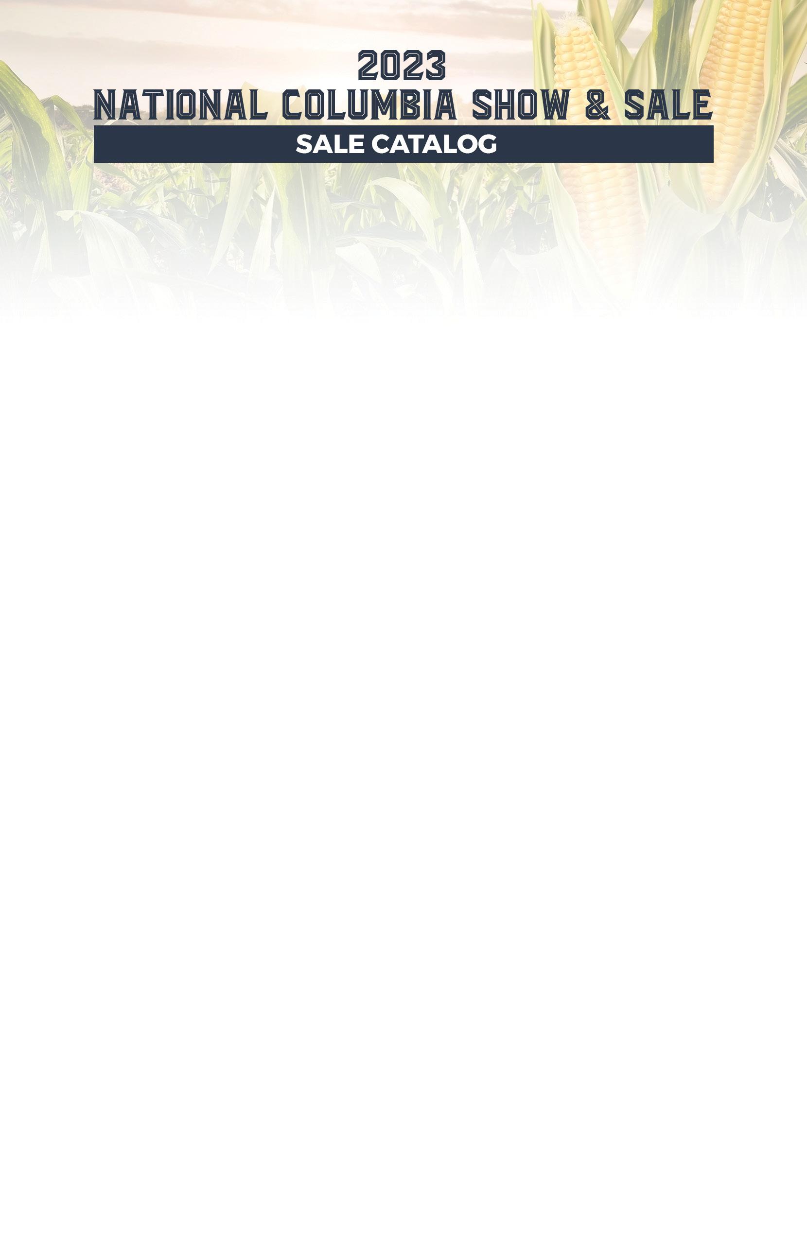 Greetings from Wisconsin! After a very prolonged winter, we’re finally having some nice spring days, and I can really feel the wheels in motion toward sale season. I’ve already been involved with several online sales and am looking forward to leaving next week for my first live sale of the year. Soon, it will be time to head to Spencer for the National Columbia Show & Sale! After putting this magazine together, I’m more excited than ever for the National. Based on the interactions I’ve had with a lot of you, I’m confident the quality will be as high as ever.