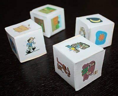 • Podemos tirar un dado cada uno, por turno, y seguir la historia que haya empezado el jugador anterior. También podemos establecer un tiempo para que cada jugador cuente una parte de la historia, seleccionando las imágenes que quiera.