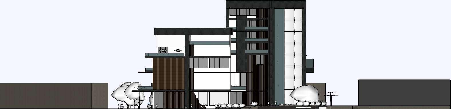 Se generan unos quiebres en su volumetría los cuales permiten una vista más amplia hacia las visuales y a su vez a reducir la incidencia solar.