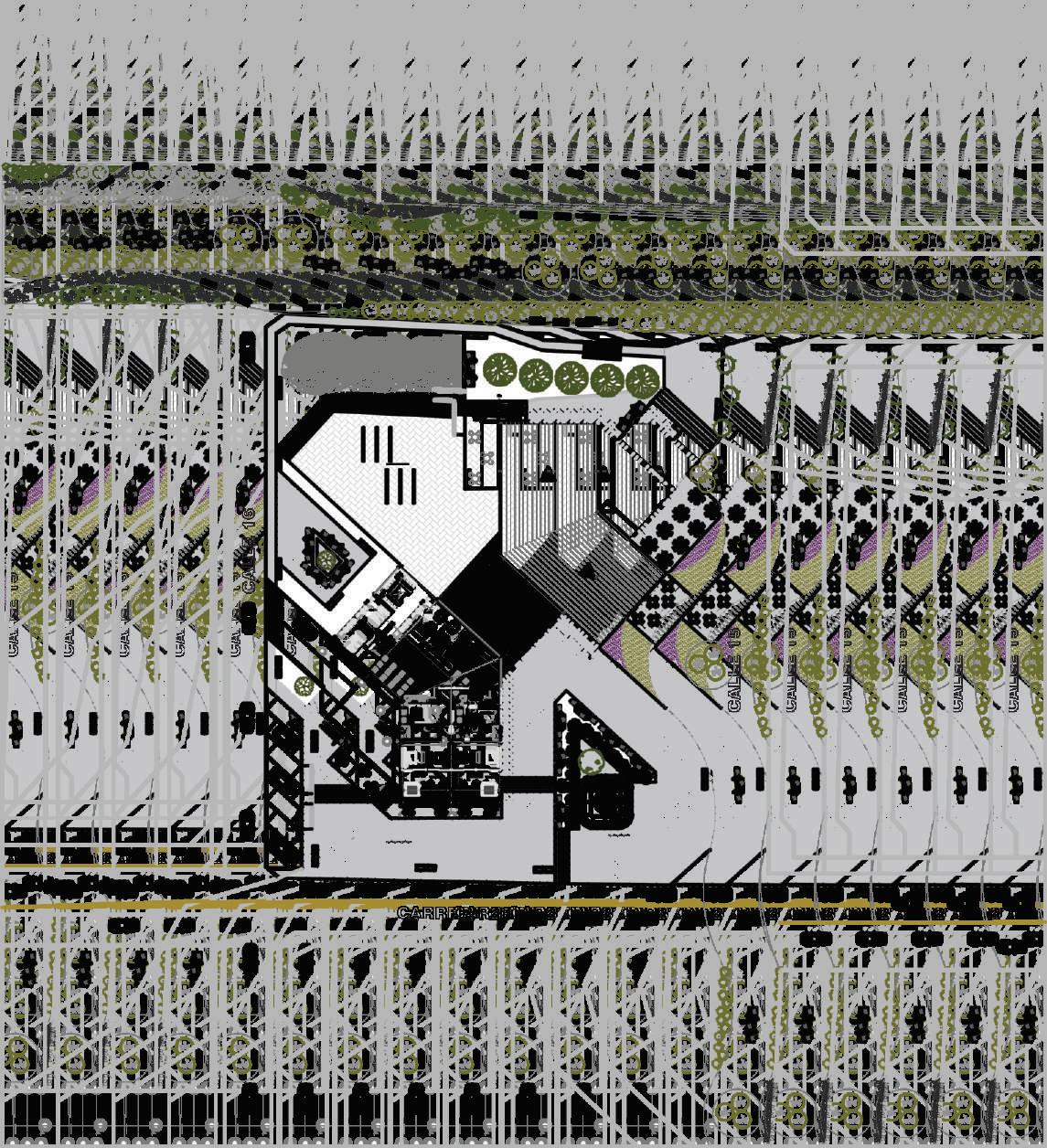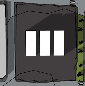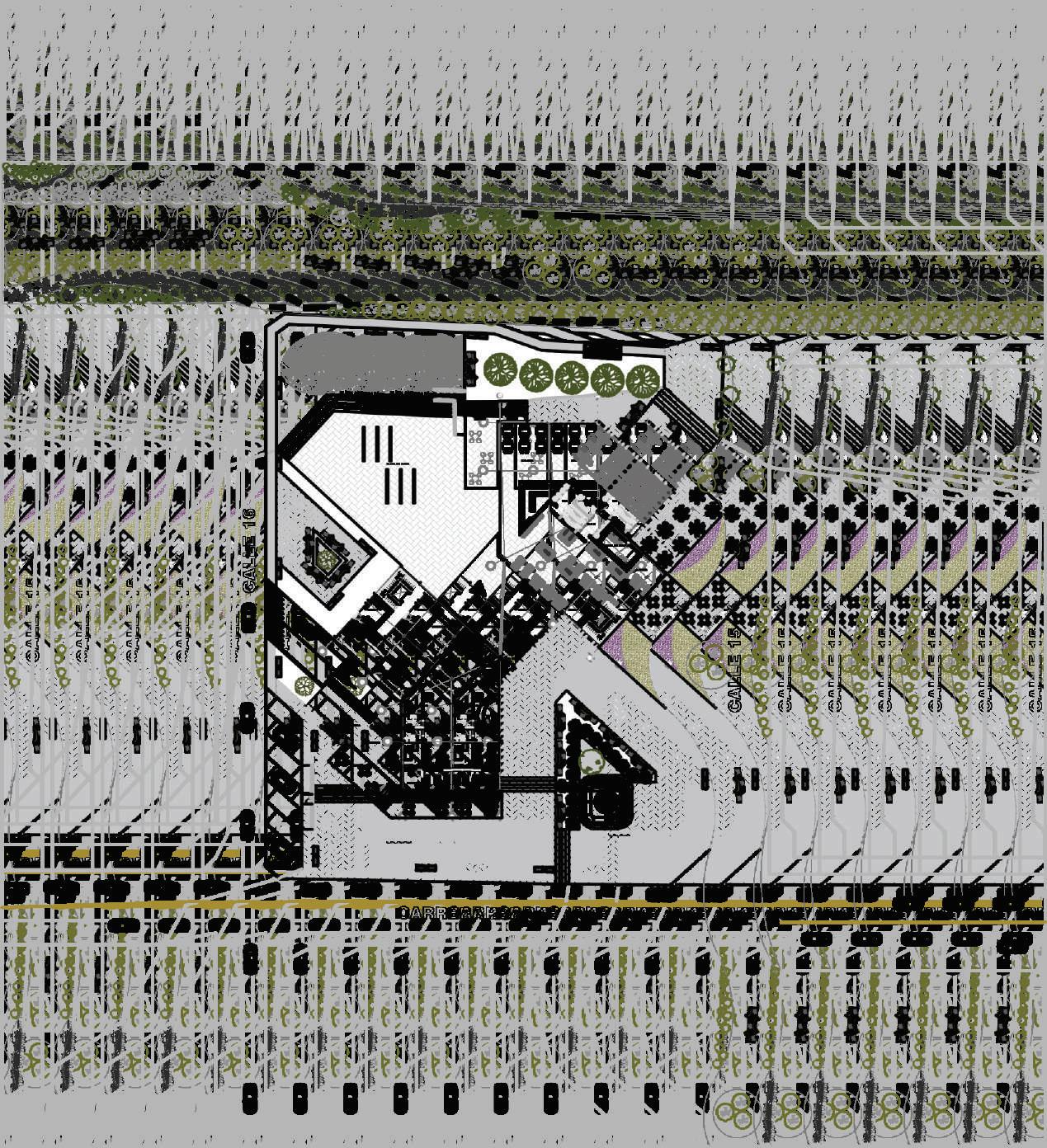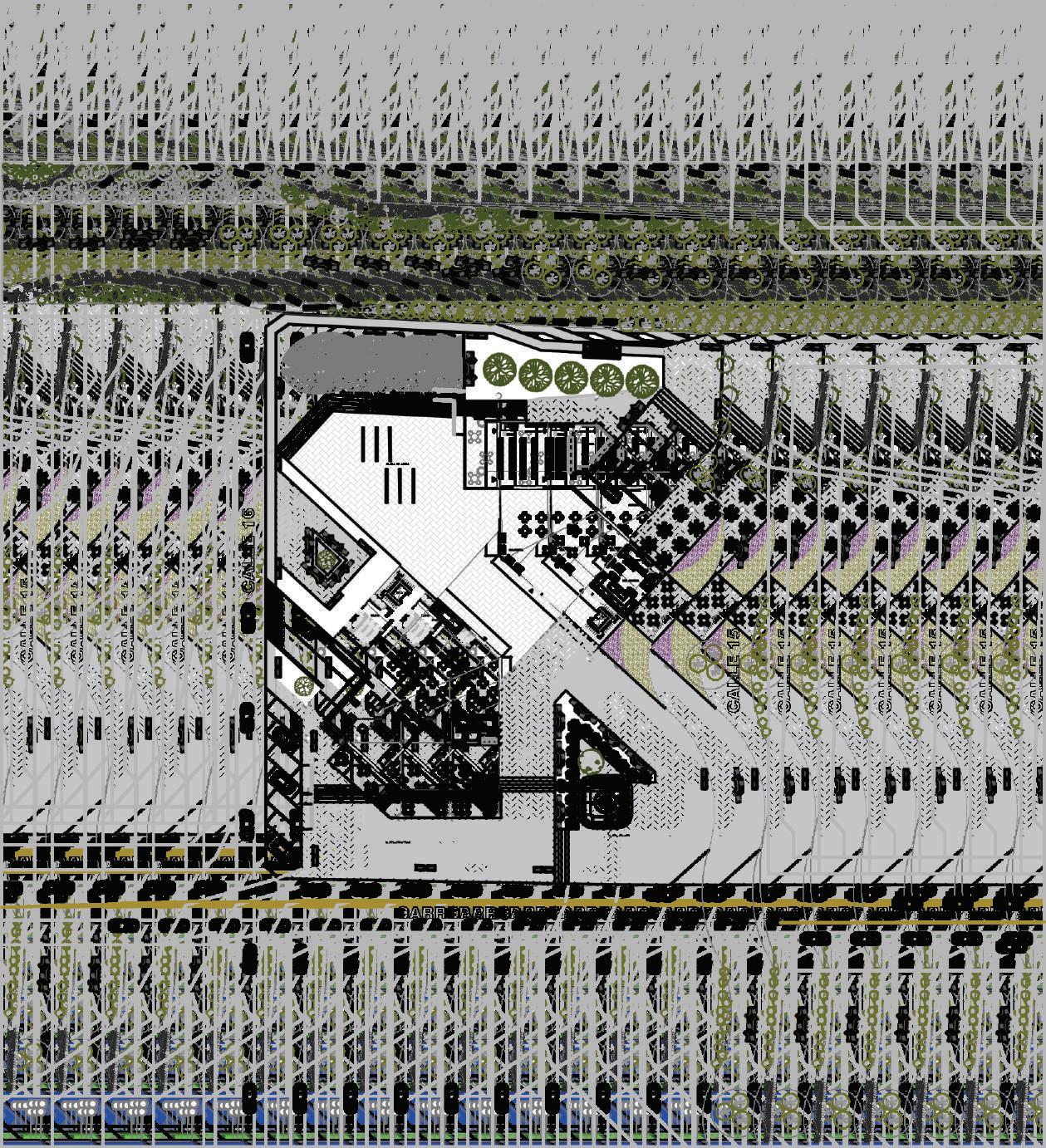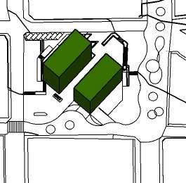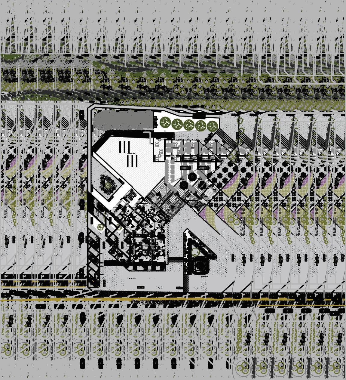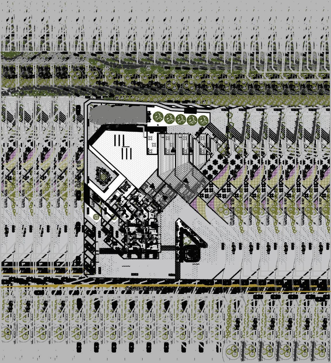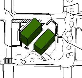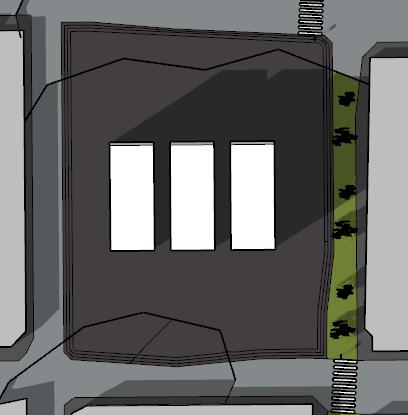1. tres volúmenes ubicados verticalmente al eje de las calles.