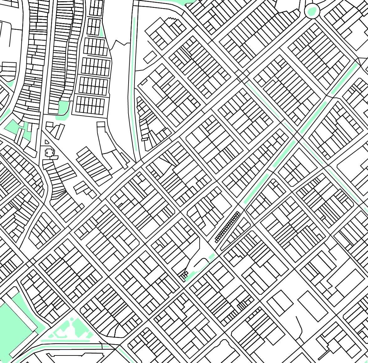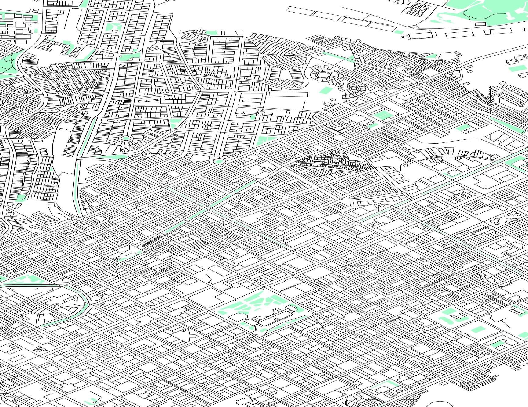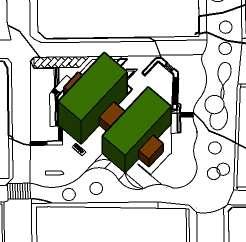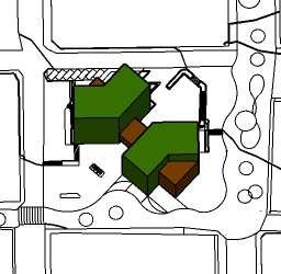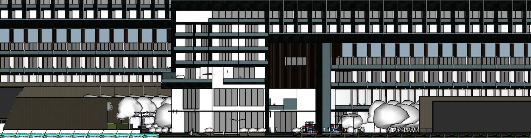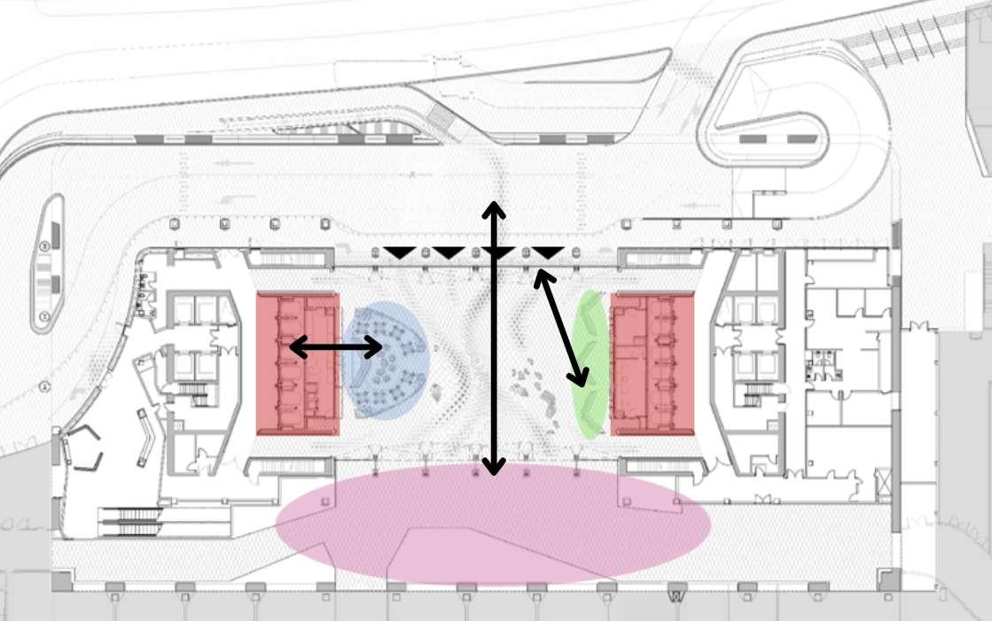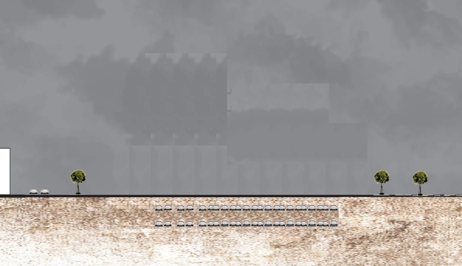 1. tres volúmenes ubicados verticalmente al eje de las calles.