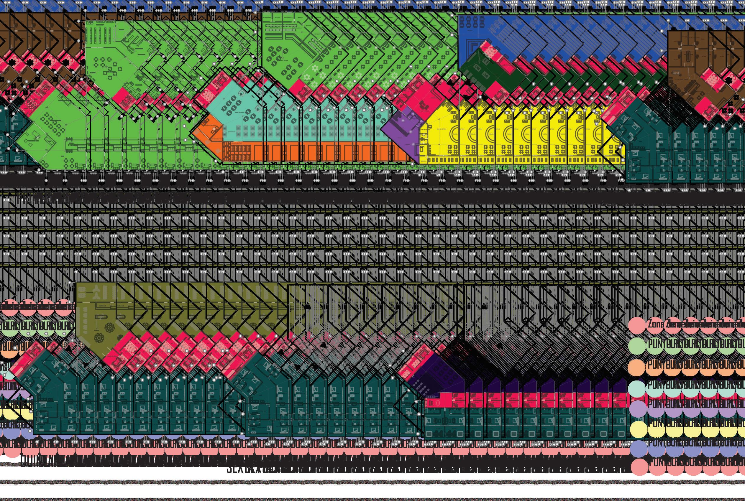 P.F P.F 4 W.C Habitaciones virtual room cafetería 1 Mini- market P.F tienda de cafe P.F W.C Enfermería stands Farmacia cuarto de control 3 Bolera P.F piscina Bar-discoteca P.F W.C Recepcion Game box W.C Coworking Restaurante 2 P.F administración Auditorio P.F W.C W.C 30