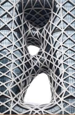 una vez más la arquitecta implementa un estilo orgánico y futurista el cual fue inspirado en técnicas tradicionales de tallado de jade chino que producen formas fluidas se compone por cristalería y acero el cual recubre la fachada completamente, está atravesado por huecos externos que conectan las fachadas norte y sur los cuales crean una ventana urbana que une los espacios comunes interiores del hotel con la ciudad.se logra el objetivo principal el cual es crear un edificio de 40 pisos sin colmnas y esto debido a que la estructura hace parte clave de las fachadas y a pesar de ser un edifico bastante alto no obstruye completamente la vista y relación con la ciudad.conclusiónes importante como nos emplazamos y relacionamos tanto con el entorno inmediato como con el paisaje y el resto de la ciudad .