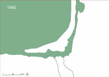of the lagoon is a small wetland area, Zoarvlei, between Paarden Eiland and the residential suburb of Brooklyn, and the wetlands at the confluence(s) of the Liesbeek and Black River” (Cate Brown and Rembu Magoba, 2009). Part of the research for this study comprised off a review of historical maps to understand the history and influences of the change from an estuary to a canal. The findings in this process are new and were not mentioned before in this detail in the known publications on the Salt River. The emergence of the Salt River Canal in maps was produced with the available maps from 1660 until 1958. 1958 marks the completion of the transformation from estuary to canal. The canal hasn’t changed since then.