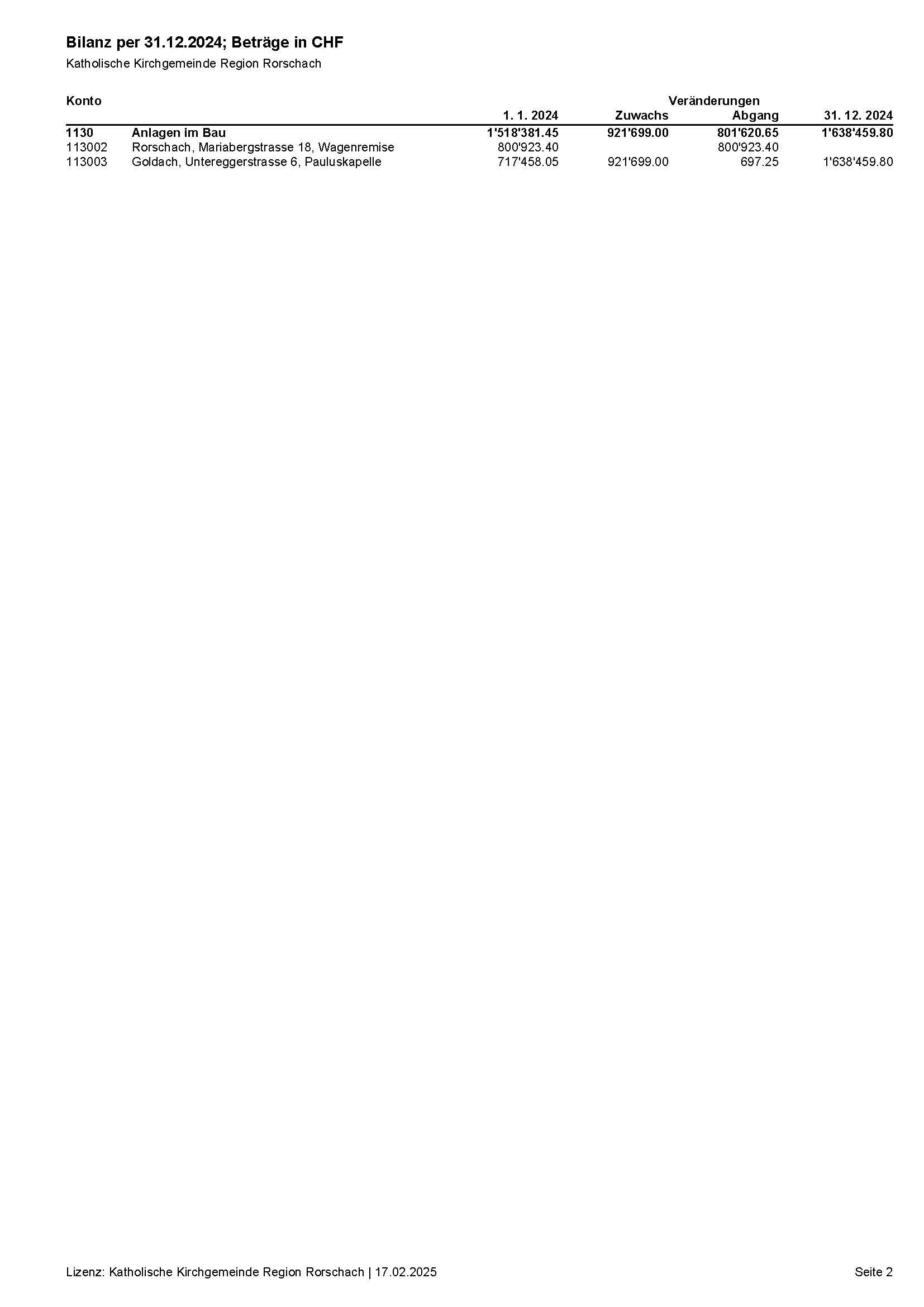 Konto Bezeichnung Objektstand am 31.12.2024 Restkredit Ausgaben Einnahmen