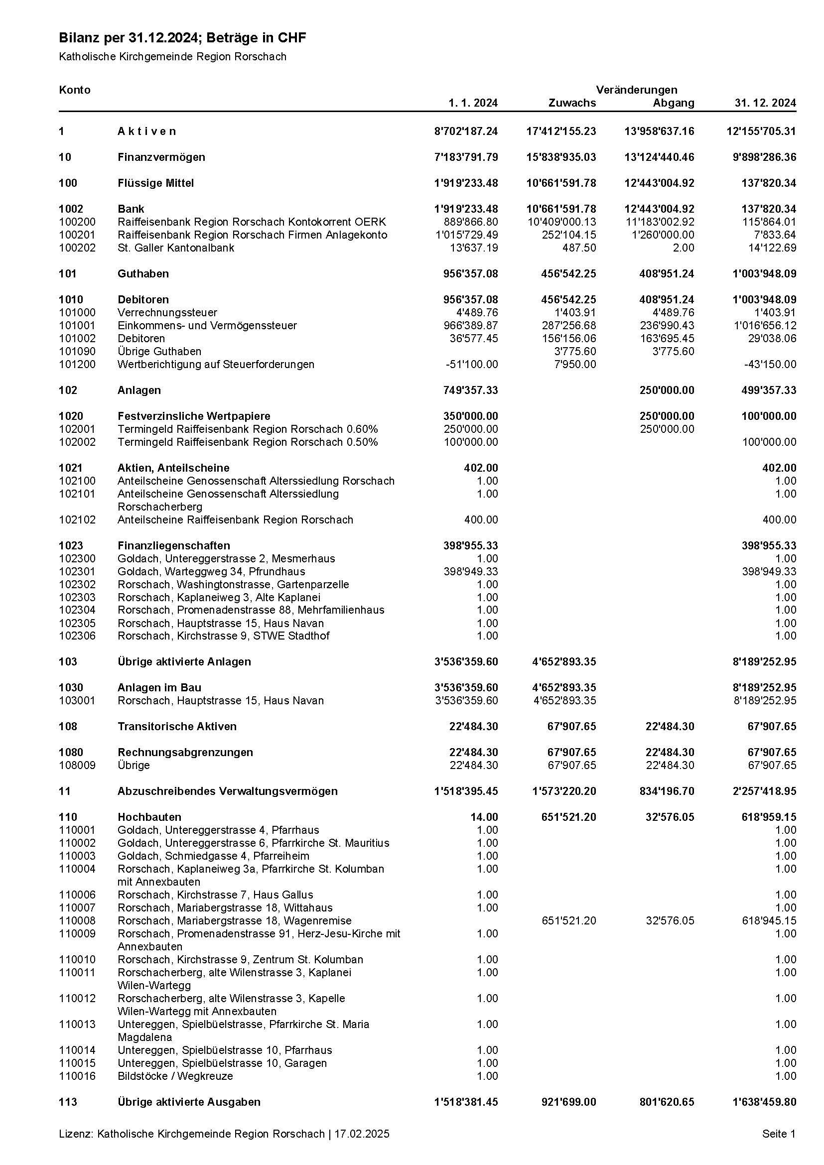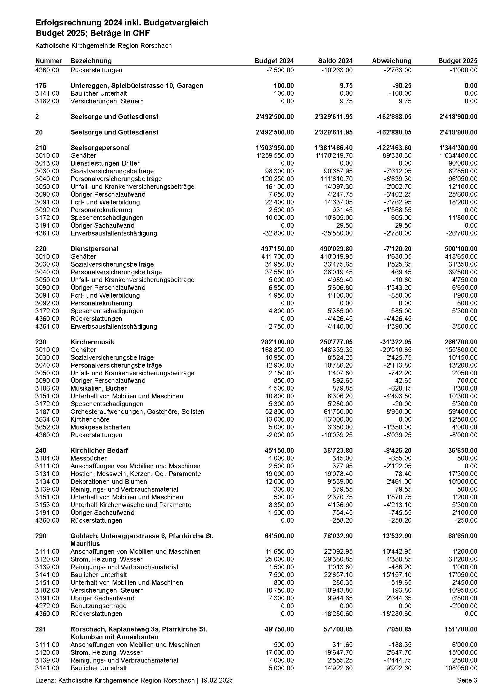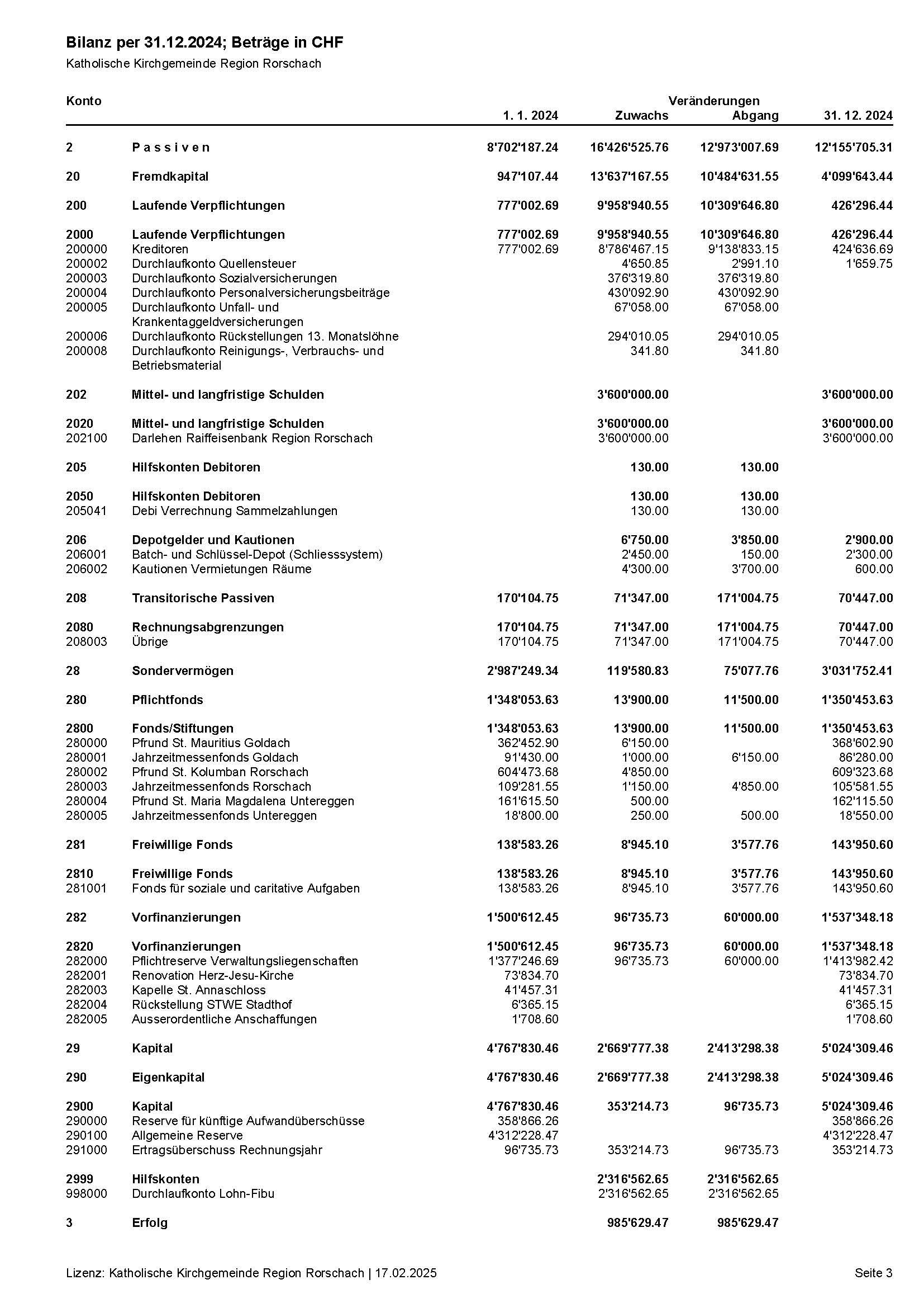 Jahres- und Investitionsrechnung 2024 wurden vom Kirchenverwaltungsrat an der Sitzung vom 21. Januar 2025 genehmigt. Budget und Steuerplan 2025 sind vom Kirchenverwaltungsrat an der Sitzung vom 11 Februar 2025 genehmigt worden.
