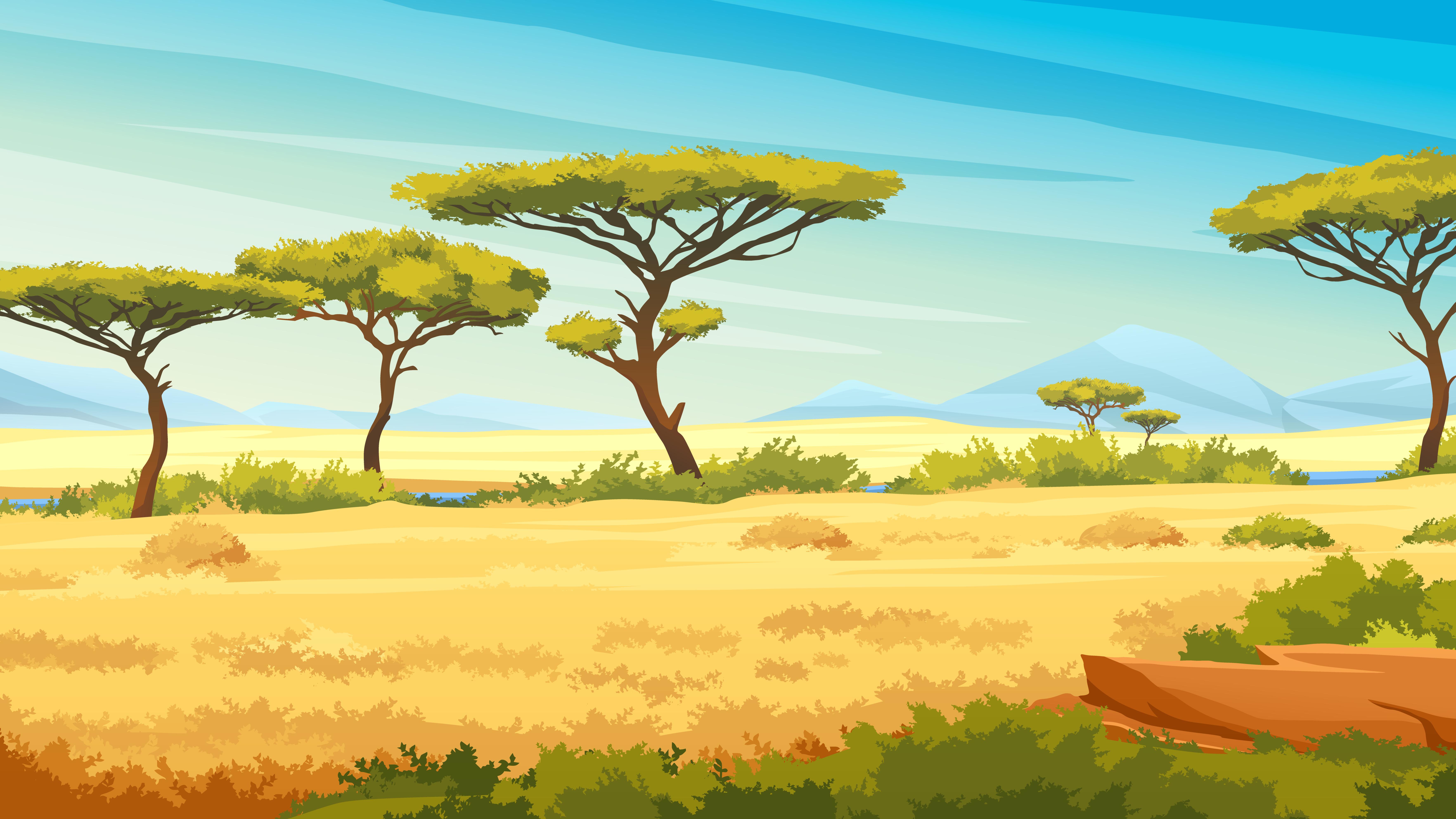 Sabana, padang rumput, daerah berhutan, lahan bersemak, & daerah bergunung
