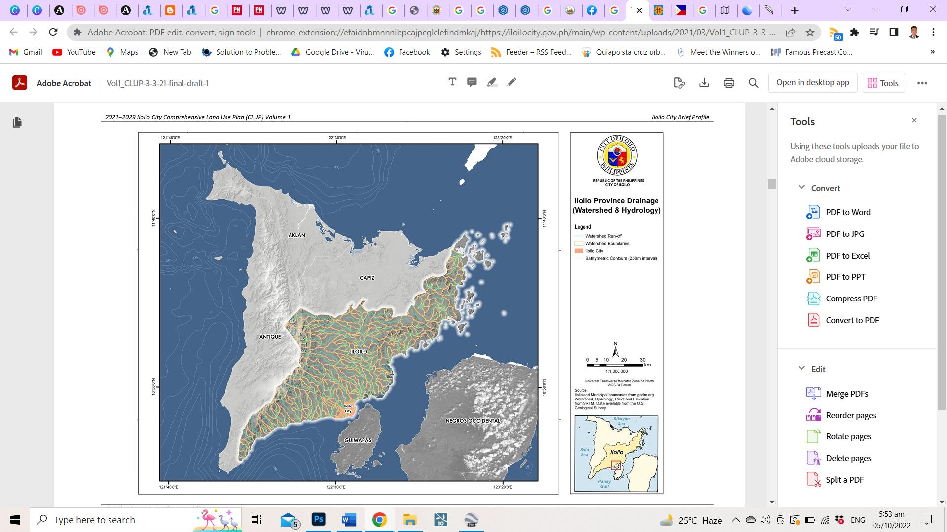 Iloilo City is located in the southern coastal part of Panay Island (see Figure 5). The city faces Iloilo Strait and Guimaras Island across it, making it a natural harbor and a safe anchorage for ships. It is bordered by the towns of Oton in the west, Pavia in the north, and Leganes in the northeast The watershed and hydrology map (see Map 1, next page) indicates that Iloilo City is the outfall of the complex water systems of the Iloilo province