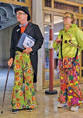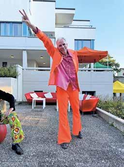 Alles war farbig, poppig, blumig, fröhlich und unbeschwert. Peter Koller hat seine Leidenschaft ausgelebt und sich in mehreren 70er-Jahre-Kostümen unters Volk gemischt. Flauer und Pauer, die zwei Figuren, welche den Geist von St. Urban suchten, reisten mit ihrer Kleidung auch zurück in die Zeit, als unsere Kirche erbaut wurde. Damit versuchten sie einen Bogen zum Ursprung von St. Urban zu schlagen. Nostalgie ist der