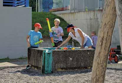 ganz jung. Wer sich selber einbringen wollte, hatte so viele Möglichkeiten geboten bekommen: bei der Spiel-Ecke, beim Jass-Turnier oder den lustigen (Wasser-) Spielen, in der Bastelecke, bei der Jamsession im Musik-Workshop mit Musik der 70er zum Mitspielen und Mitsingen oder (für die Mutigen) beim Balanceakt über die gespannte Slackline.
