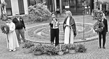 Der Beginn des PalmsonntagGottesdienstes fand beim Brunnen des Altersheimes statt. Die Blumenfrauen hatten schöne BuchsbaumStöcke bereitgestellt. Diese sollen daran erinnern, wie Jesus in Jerusalem mit Palmwedeln begrüsst wurde. Die Gläubigen zogen singend in die Kirche ein.