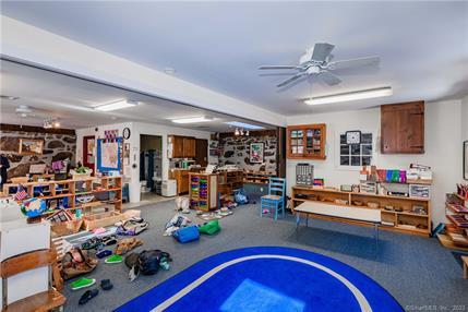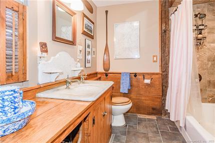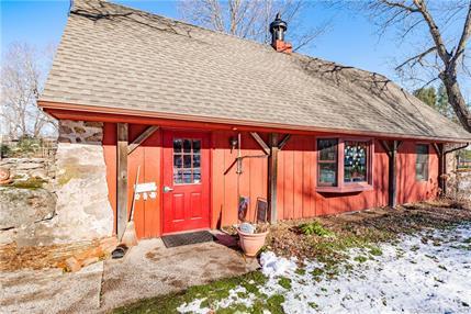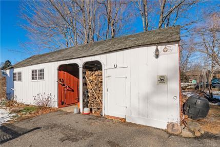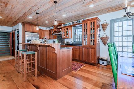kitchen. With many features built or designed by CT artisans, it boasts an outdoor patio, wide-plank wood floors, custom Colonial era-looking FP, granite counters, expansive pantry & breakfast bar made from a salvaged birch slab from Choate Rosemary Hall. Cooks will love the Thermador gas convection oven, a new stainless steel Electrolux dishwasher & a refrigerator/freezer. Other modern amenities include Central air, propane furnace & cedar closet. The bucolic 4-acre setting includes six outbuildings. The Boulder Knoll Montessori School currently resides in the carriage house & can continue to run and generate income for a new homeowner, or the space may possibly be converted into a charming Air BnB space, in-law apartment, or home office.