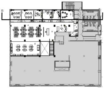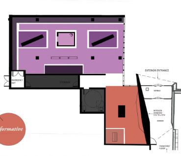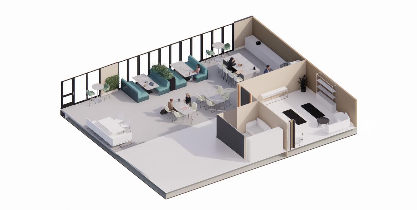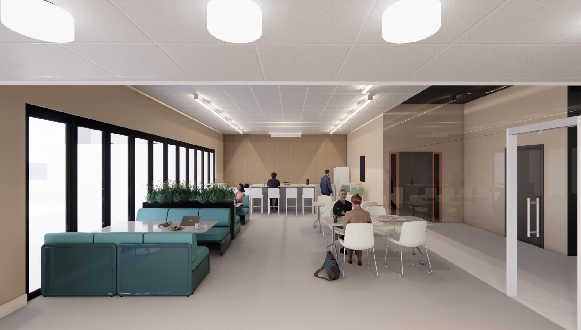 2. In the café, there is a variety of seating options, including booths, stools, and tables, all designed to be accessible to everyone and meet ADA requirements.