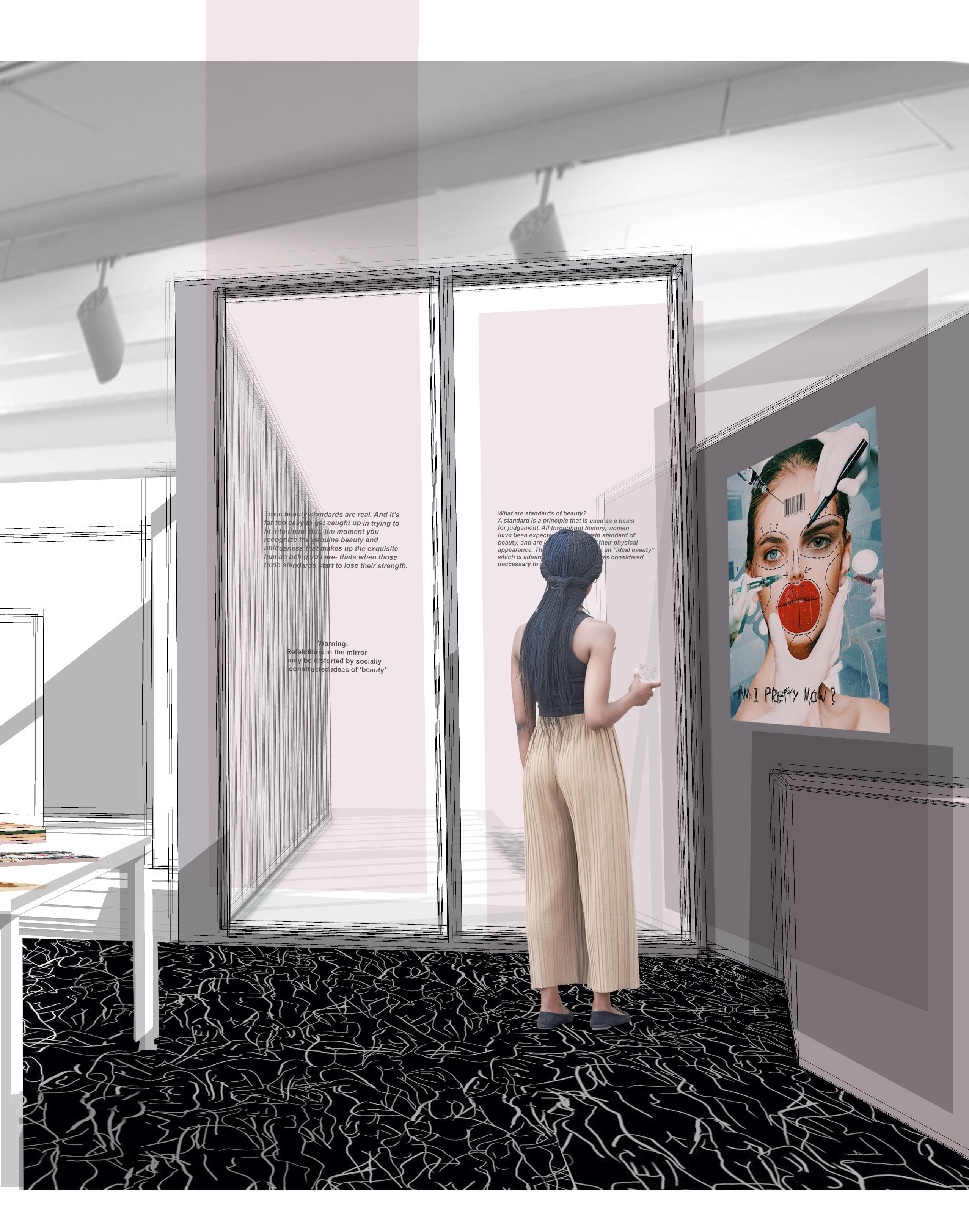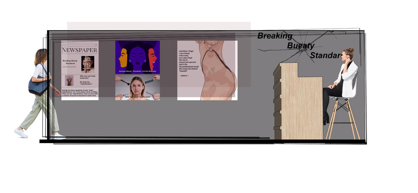 Utilizing the Moss Art Center in Blacksburg, VA as an exhibition space, we aim to convey a message and inform people about a topic we are passionate about: beauty standards. My goal is to teach that “society’s ideal imperfections about bodies” are neither right nor true. Everyone is beautiful in their own way. We want visitors to leave this exhibition with a renewed sense of self-love and appreciation for every part of their bodies.