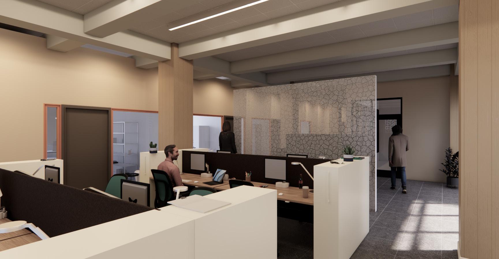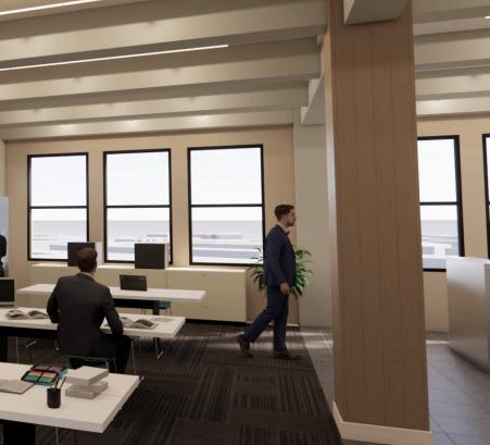 Revamp Interiors, located in Norfolk, VA, utilizes the original structure and framework of buildings. The name “Revamp” signifies our commitment to enhancing and improving the appearance of spaces while preserving their original character. Specializing in residential design, the firm occupies two floors of varying sizes and purposes, each thoughtfully designed to address the challenge of working around columns. Our goal is to create a natural flow within the space, providing open areas that convey a sense of spaciousness while incorporating elements of privacy.