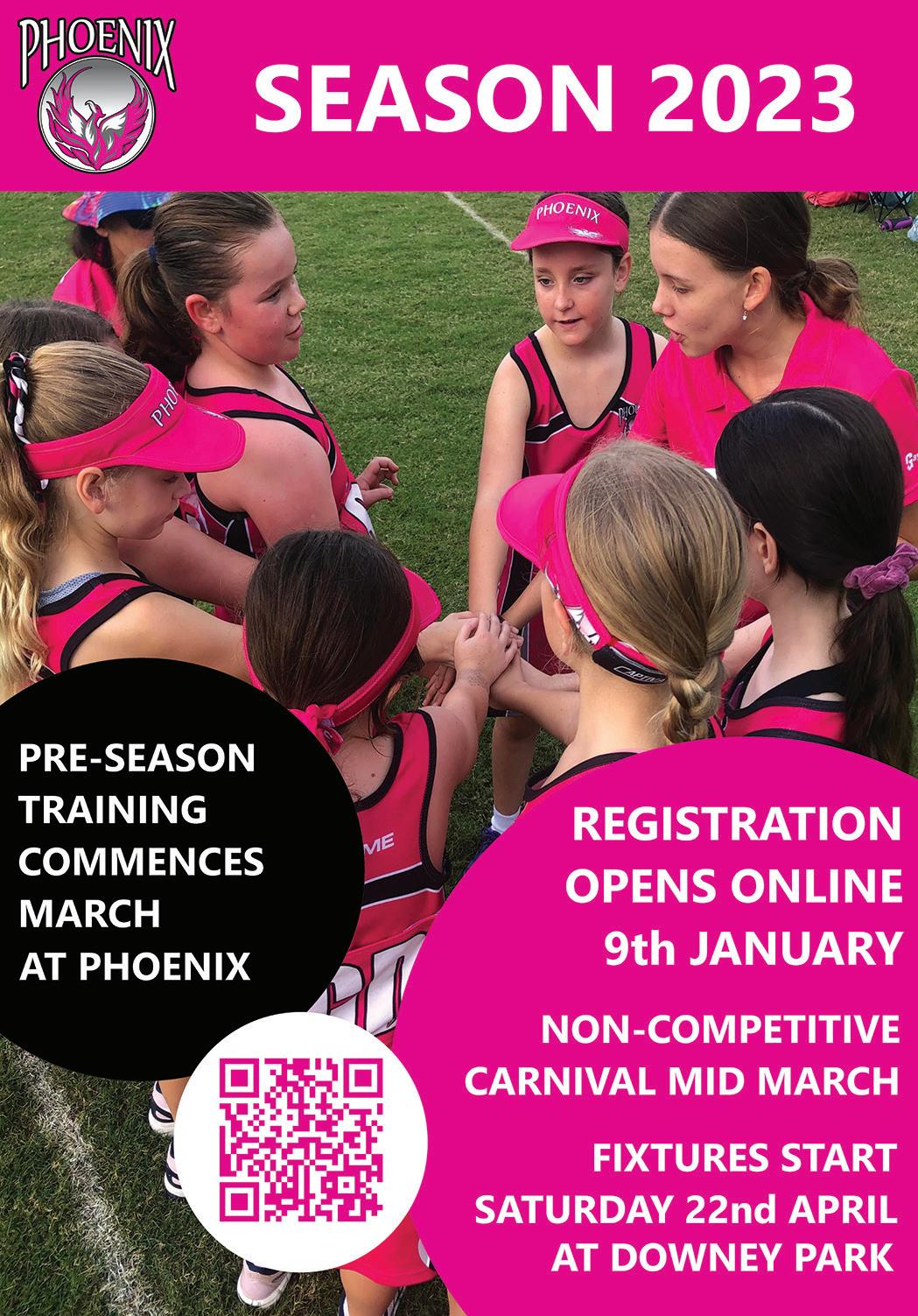 Phoenix Netball welcome all players 7.5 years or older (born after 30/06/2016). Registrations for the Winter season open online early January with a drop-in information and uniform night held on Monday 30th January and Wednesday 1st February from 5pm – 7pm at their courts.