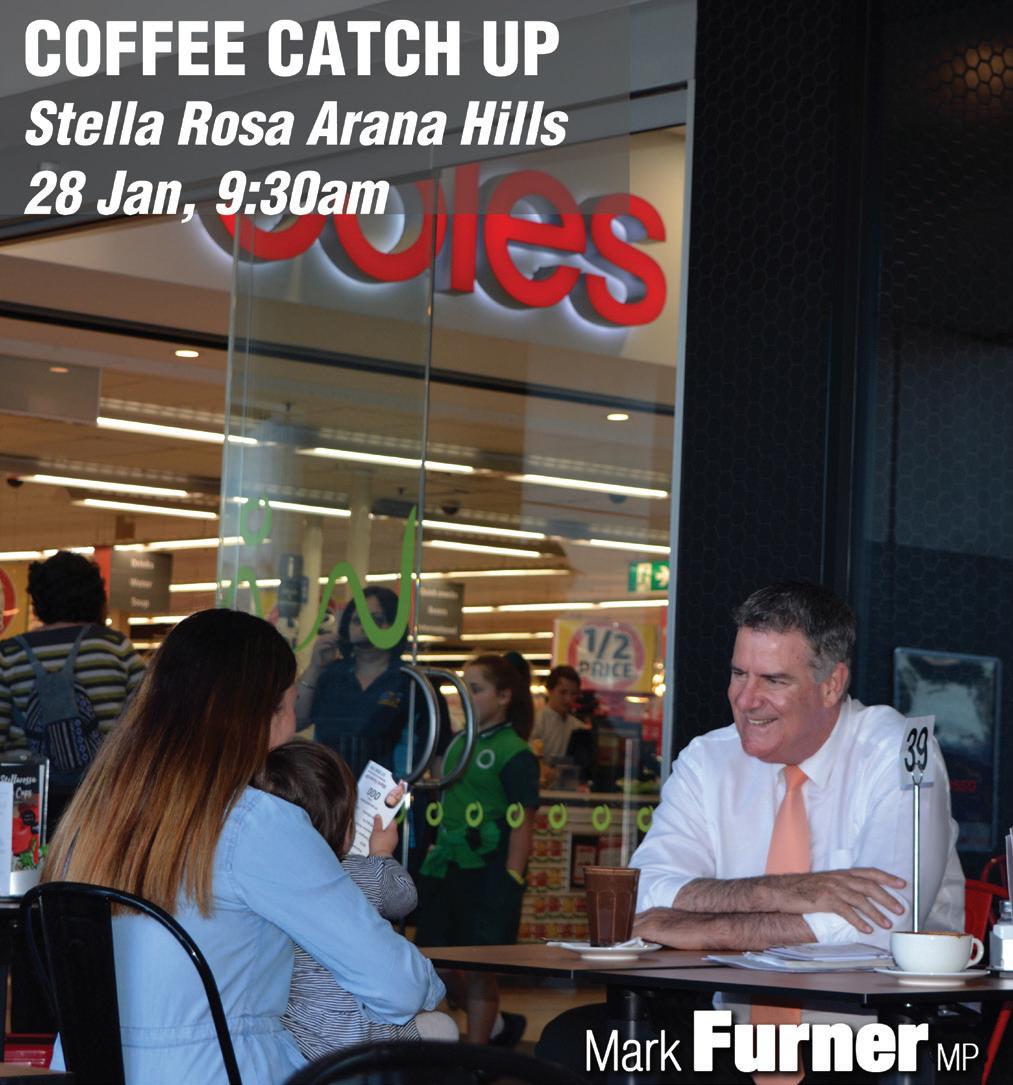 My first coffee catch-up for the new year will be at Stella Rosa in Arana Plaza just next to Coles at 9:30am on 28 January. Come on down and grab a cuppa and have a chat about the things that matter to you. My shout!