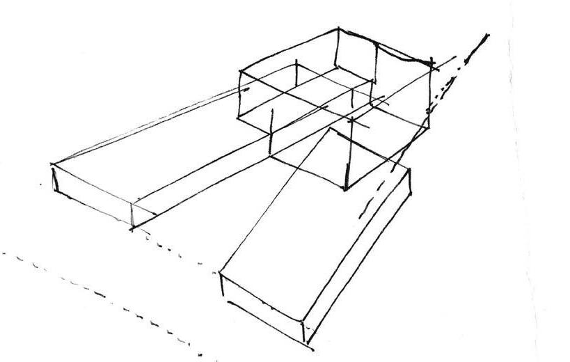 This orientation also reflects the initial site observations - the back of the site is more quiet and private while the front of the site reaches into the intersection and the more chaotic energy of the neighborhood. This programming orientation and logic became the basis of design as I refined plan and form.