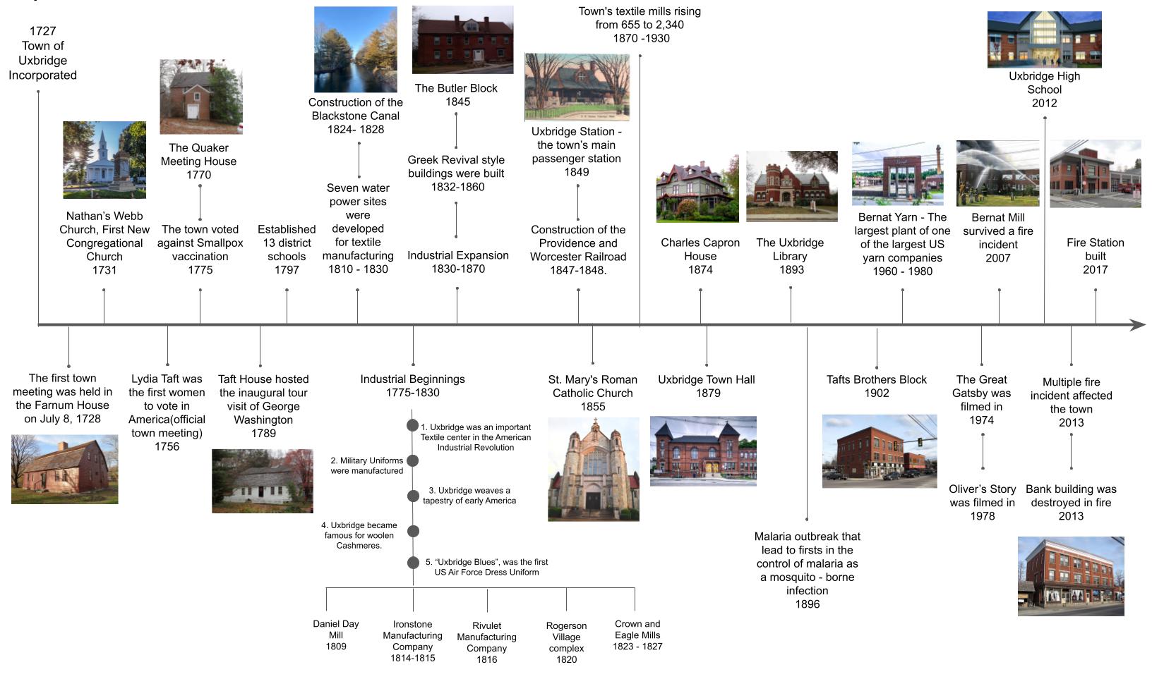 The town of Uxbridge is one of the historic cities of the US with more than 375 National Historic Sites. From my desktop research and community meeting, I identified a few issues of the residents and the heritage sites. Some of the most important issues as stated by the residents of the town are - ‘limited mobility access’, ‘transition to a destination economy’, ‘difficult Pedestrian and bicycle access’, and ‘re-purposing of town-owned properties. The main roads of the town route 16 and the main street are the busiest and the dangerous roads in the town. But there are a lot of historic landmarks and parks along these roads. Through our desktop research and case studies of the surrounding cities like Salem, we proposed a few strategic actions that could be implemented to promote the cultural heritage sites of the town. A great way to promote the heritage sites are reusing the existing building and creating public gathering space.