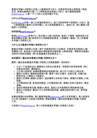 普渡大学猫头鹰研究论文是一种广泛使用的学术论文格式,它要求学生使用APA格 式撰写论文,并包含详细的文献引用和参考文献列表。这种格式能 帮助学生提高论 文的可读性和可信度,同时也是普渡大学的要求之一。