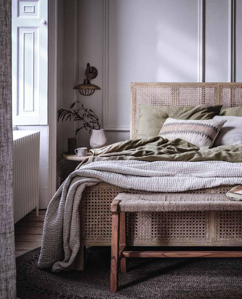 Surround yourself with the simple comforts of muted linens and earthy velvet, inviting a sense of serenity into your home. Hand carved decorative pieces, structural lighting, and relaxed seating set the scene, and for the finishing touch layer handwoven soft furnishings to create a timeless hideaway.