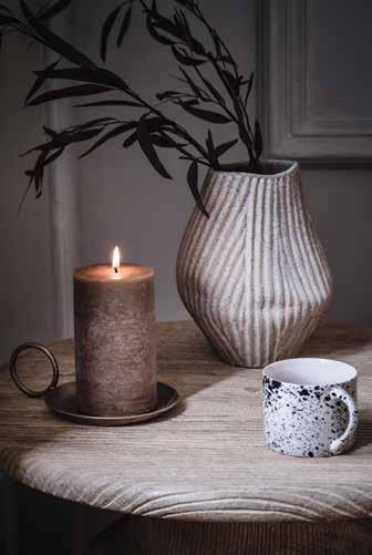 3. NEW Aluva Glass Side Table Clear & Antique Brass | £195.00 | 50 x 38cm (dia) 4. NEW Faiyaz Jute & Cotton Cushion Cover Natural & Dark Blue | £55.00 | 50 x 50cm 5. Mayla Cushion Cover Natural | £65.00 | 60 x 40cm 6. NEW Cali Mug – Set of 2 Earth Blue | £22.50 | 10 x 10cm (dia) 7. NEW Dimali Metal Candle Holder with Handle Antique Bronze | £18.00 | 7 x 16.5 x 12.5cm 8. NEW Rustic Pillar Candle Charcoal | £20.00 | Tall 13 x 8cm (dia) 9. Timu Leather Journal Chocolate Brown | £28.00 | A6