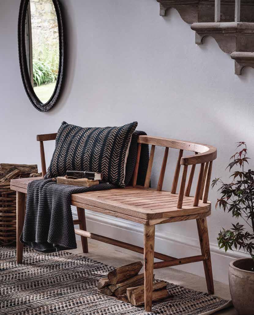 Escape the winter weather and arrive home to a warm welcome with a hallway that feels instantly inviting. Style with an elegant mirror for amplifying natural light, and a handcrafted bench that serves as both a statement piece and functional addition to your home.