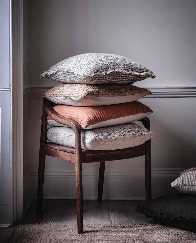 1. NEW Gili Linen Cushion Cover Dark Green & Natural | £65.00 | 50 x 50 cm 2. Mayla Cushion Cover Natural | £65.00 | 60 x 40cm 3. NEW Gili Linen Cushion Cover Dark Green & Natural | £65.00 | 40 x 60cm 4. NEW Deuli Linen Cushion Cover Rust | £45.00 | 40 x 60 cm 5. Barjora Braided Hemp Square Cushion Cover Natural | £55.00 | 50 x 50cm 6. NEW Zairya Jute & Cotton Cushion Cover Natural & Rust | £55.00 | 40 x 60cm 7. Mayla Cushion Cover Natural | £65.00 | Small 50 x 50cm 8 Tussi Sia Cushion Cover Mustard & Grey | £65.00 | 40 x 60cm 9. Odisha Linen Cushion Cover Charcoal & Natural | £55.00 | 50 x 50cm