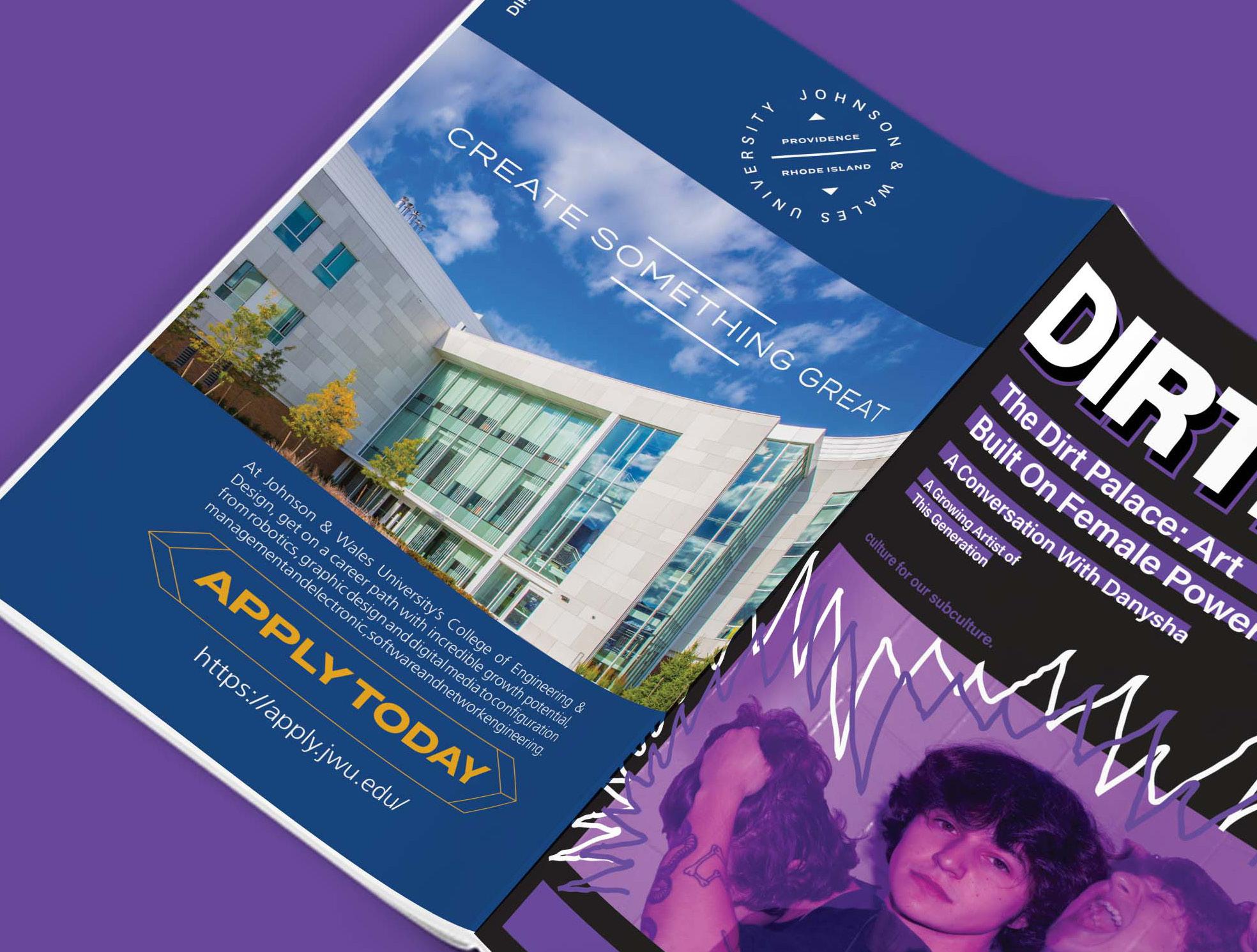 DIRTBAG MAG was created to be an arts & culture magazine for alternative audiences. The goal was to have a traditionally readable editorial layout with added flare through visual elements .
