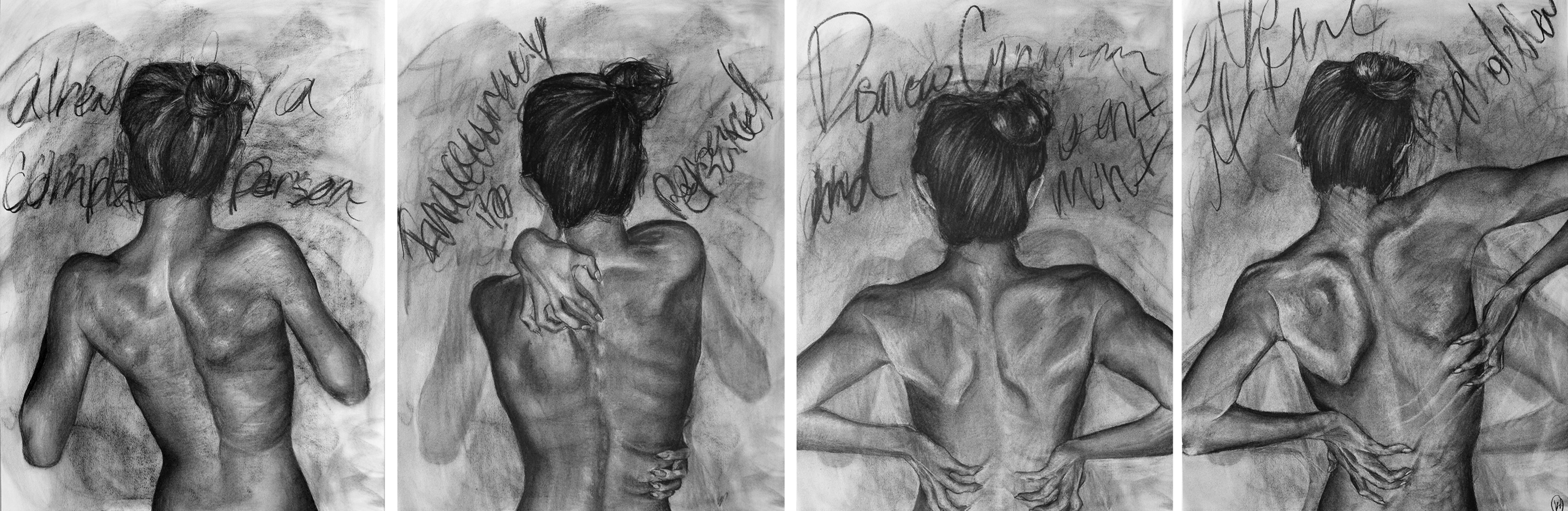 I was inspired by South African Artist William Kentridge’s style of animation. I wanted to show the impermanance of the body and how insecurity and fixation on something ever changing is useless for the mind.