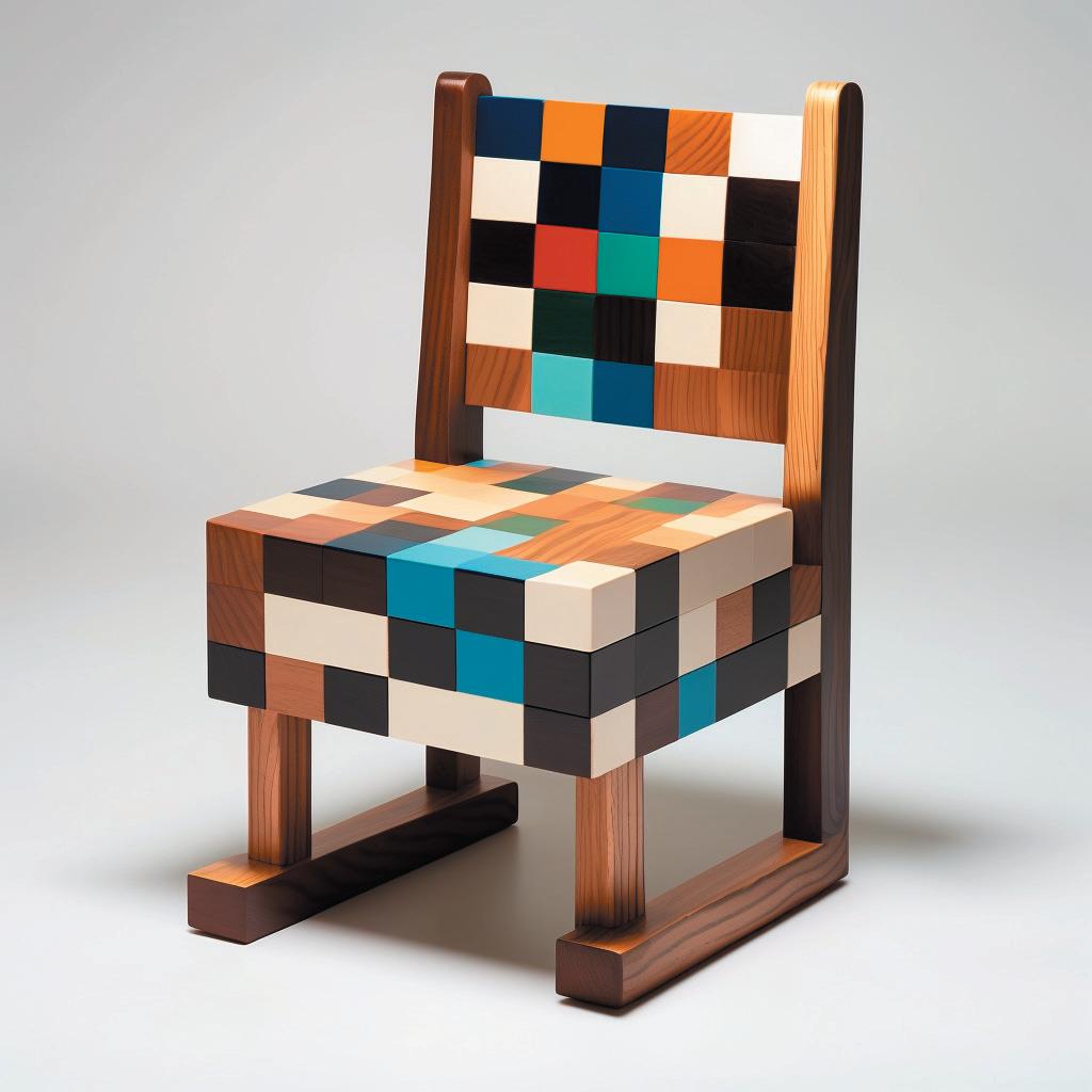 For this furniture design studio, weexperimented with AI and how we can utlize artifical intelligence platforms to create our own unique chair design. This chair was specifically inspired by mismatched square tiles and the works of Sean Scully, and abstract artist from