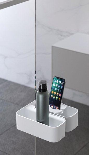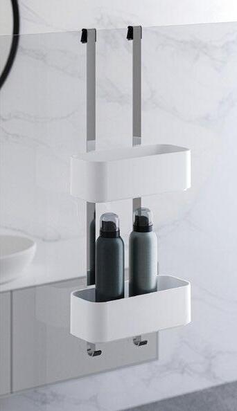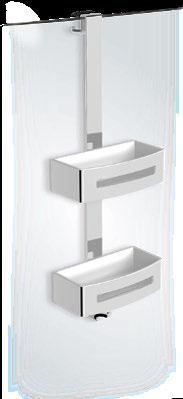Κρεμαστή σπογγοθήκη - Μπουκαλοθήκη με λευκά αφαιρούμενα καλάθια και 2 άγκιστρα (2πλά εσωτερικά και εξωτερικά). Καλάθια 22x11x6,7 εκ. έκαστο. Προσαρμογή σε κρύσταλλα 6-8-10 mm.