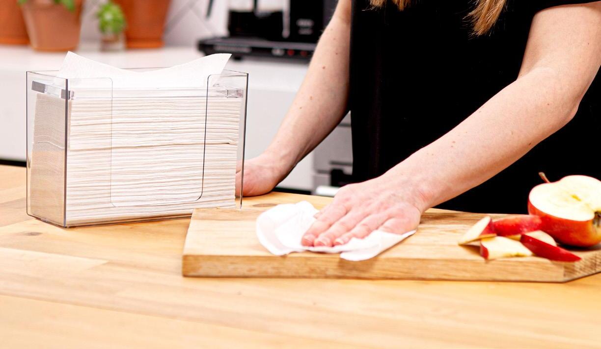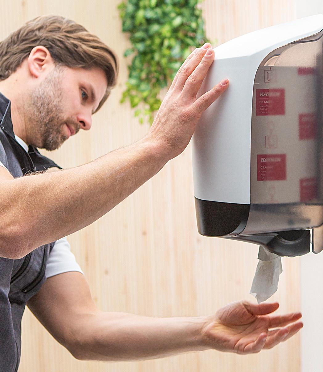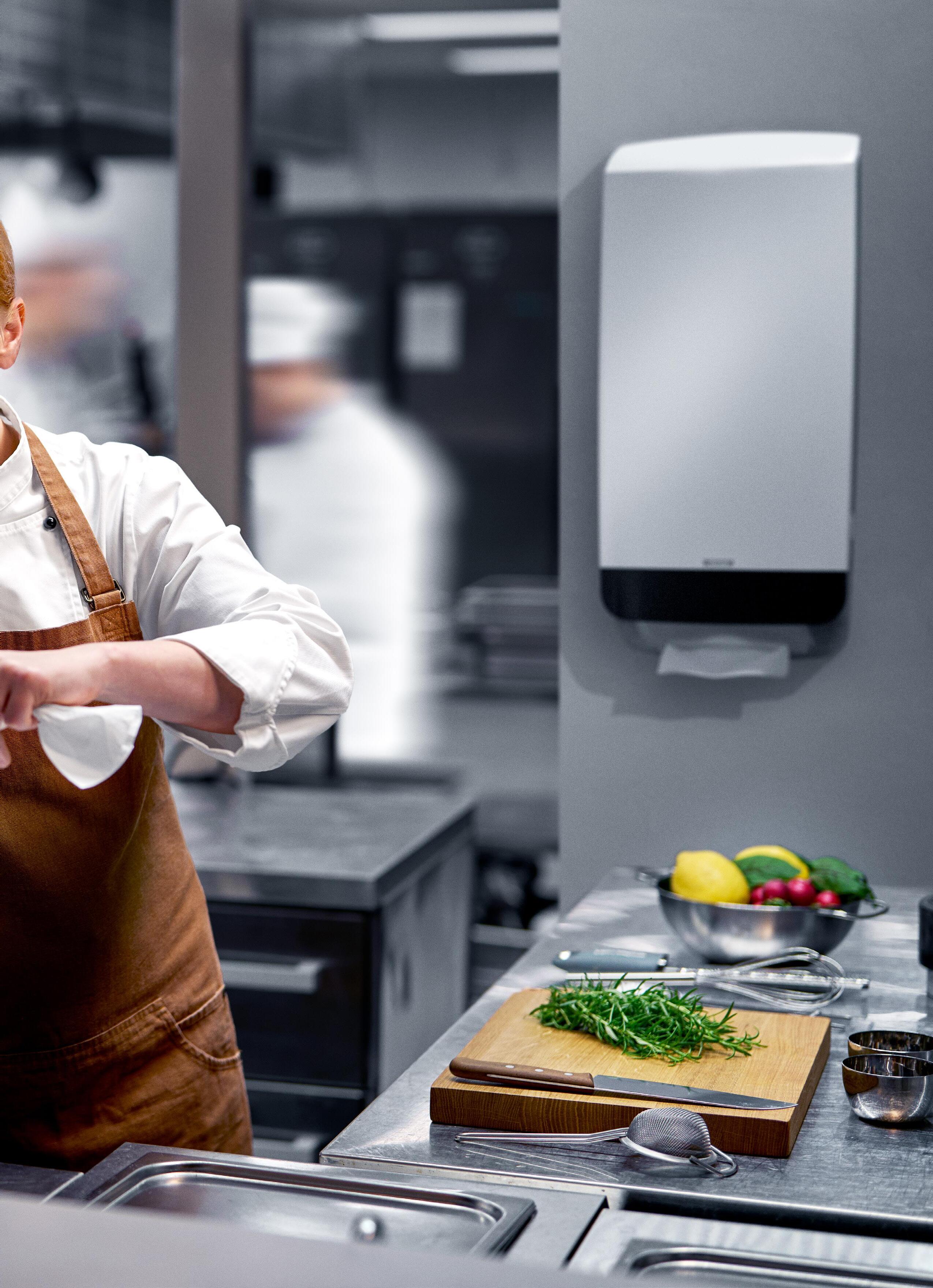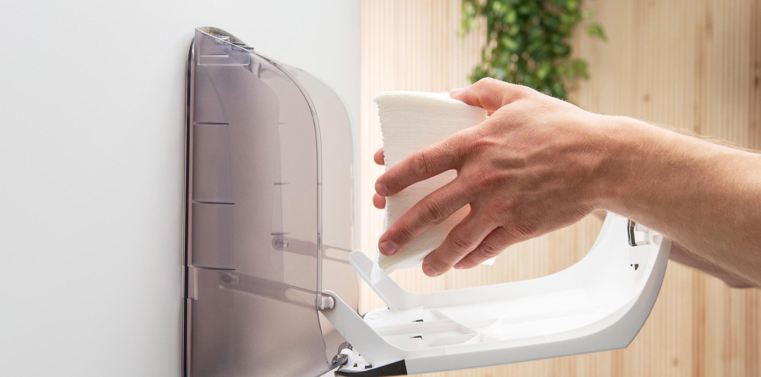 Olemme sitoutuneet tehokkaaseen hygieniaan. Siksi loimme annostelijan, joka toimii kaikkien taitettujen paperipyyhkeiden kanssa. Se tarkoittaa pidempää käyttöikää, vähemmän paperin loppumisia – ja enemmän mielenrauhaa sinulle.