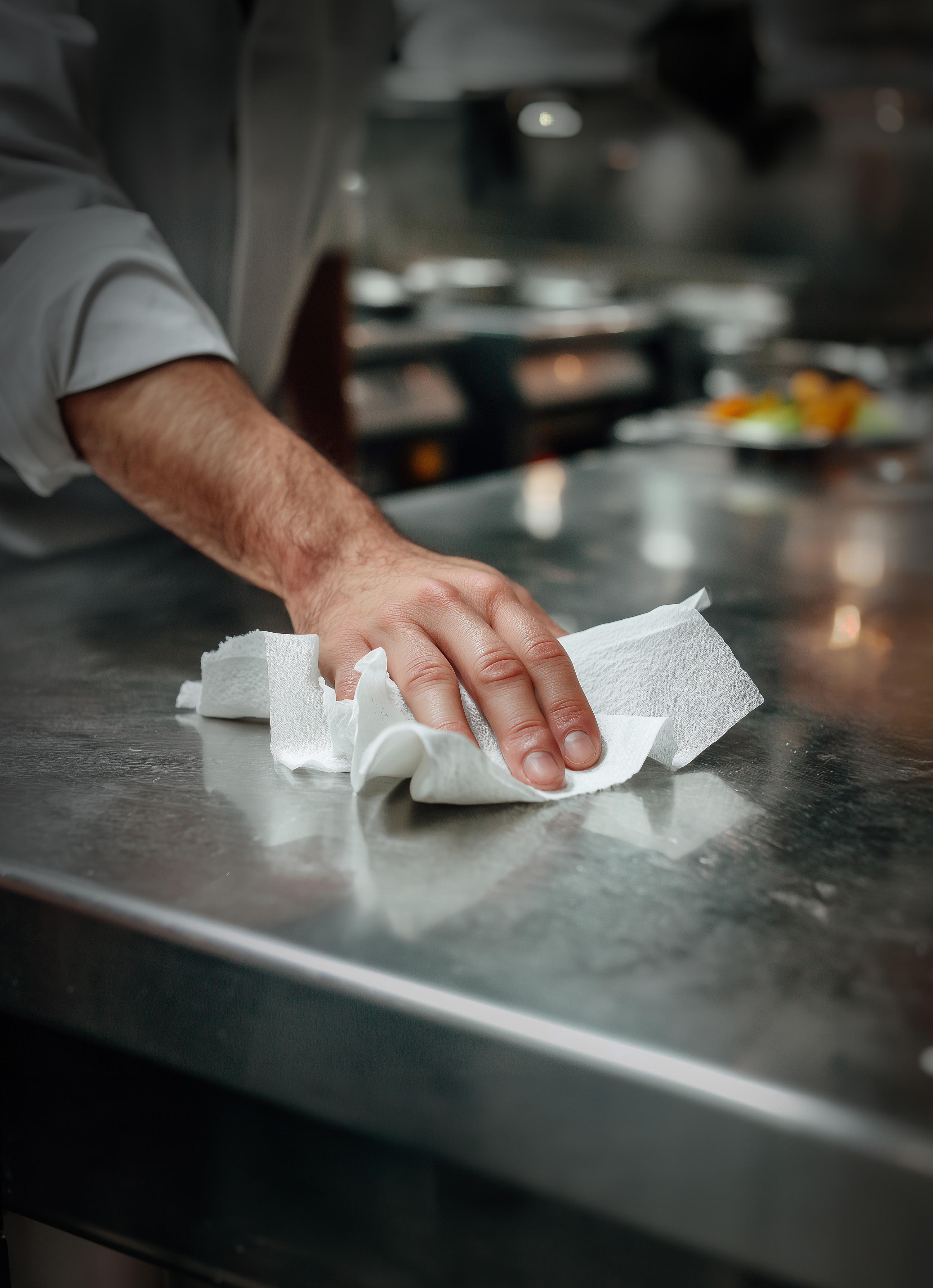 Laadukas paperipyyherulla käsien kuivaukseen tai teolliseen pyyhintään, erityisesti viskoosien nesteiden siivoamiseen.