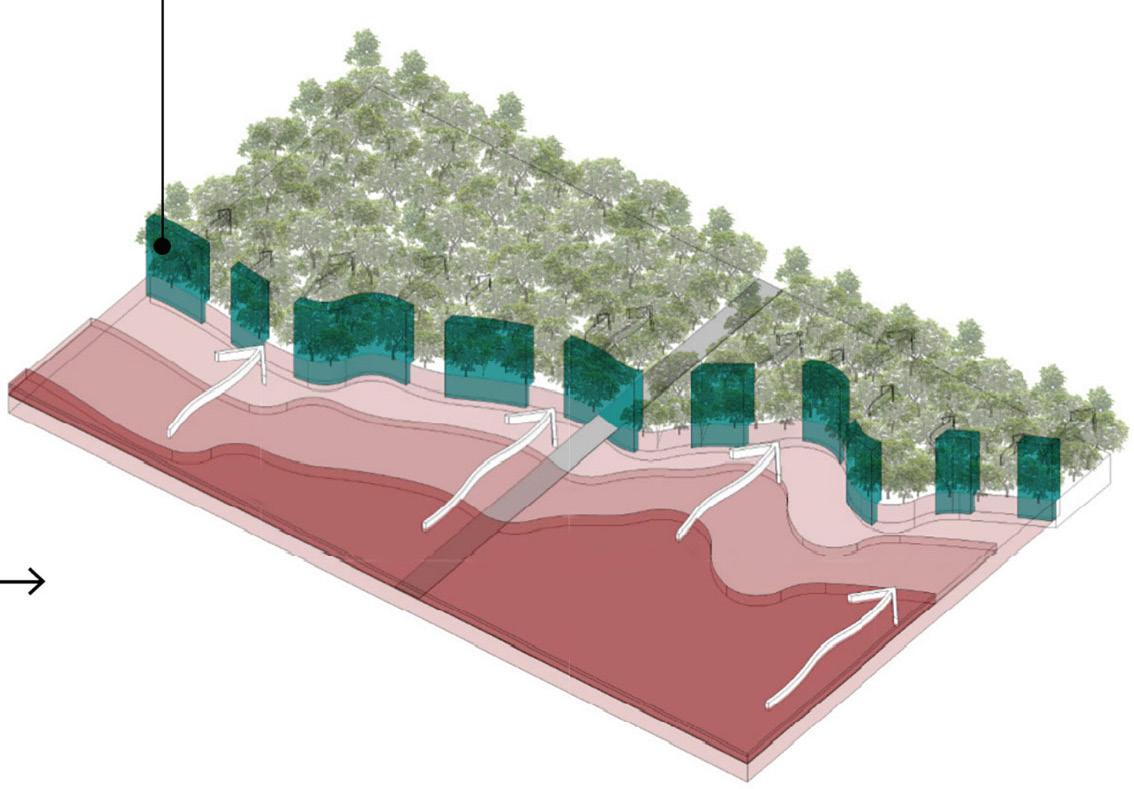 This project deeply engages with the mangrove’s boundaries, using the density and openness of the trees to blur the lines between interior and exterior spaces. This design strategy emphasizes a harmonious integration with the natural environment, promoting sustainability. The project fosters a continuous interaction with the mangrove, creating a seamless connection that merges the built and natural environments. Some elements of the project will be integrated directly into the mangrove, while others will be strategically placed at its edge, ensuring full area integration.