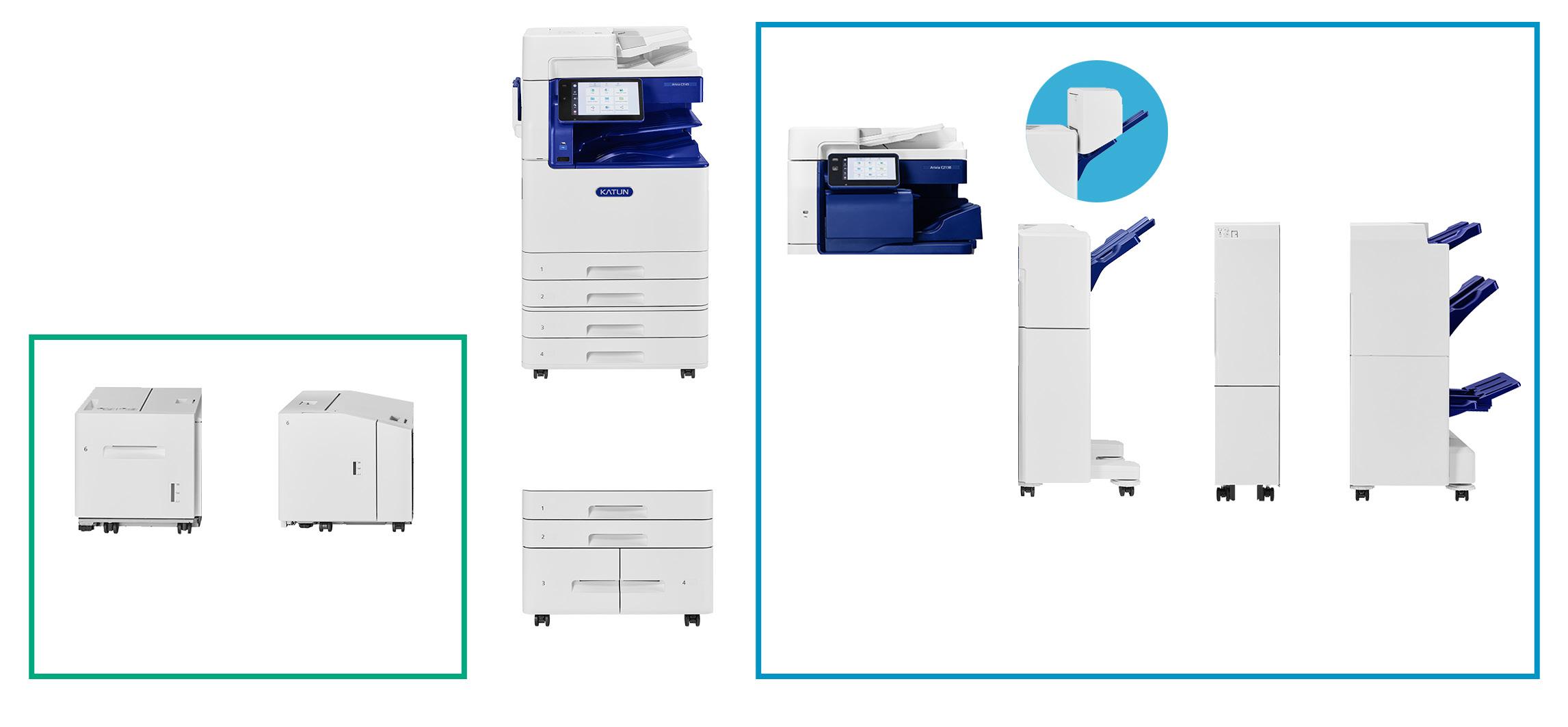 La gama de equipos multifuncionales Arivia de KATUN para grandes grupos de trabajo cuenta con tecnología de vanguardia que facilita el funcionamiento de su empresa y maximiza la productividad. Diseñados para integrarse en cualquier entorno de oficina, los MFPs Arivia resisten amenazas de seguridad actuales, ofrecen una experiencia de usuario intuitiva y proporcionan soluciones de flujo de trabajo mejoradas. Inteligentemente estructuradas para ofrecer confiabilidad y minimizar las llamadas al servicio técnico con velocidades de impresión de hasta 30 ppm, velocidades de escaneado de hasta 270 ppm y una completa gama de opciones de entrada y finalizador, Arivia es un potente activo para su negocio.