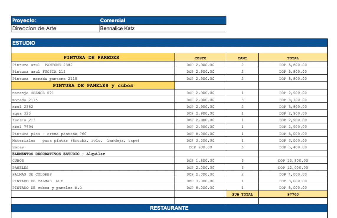 2019- DIPLOMADO EN DIRECCIÓN DE ARTE PARA CINE & TV Unibe, Santo Domingo