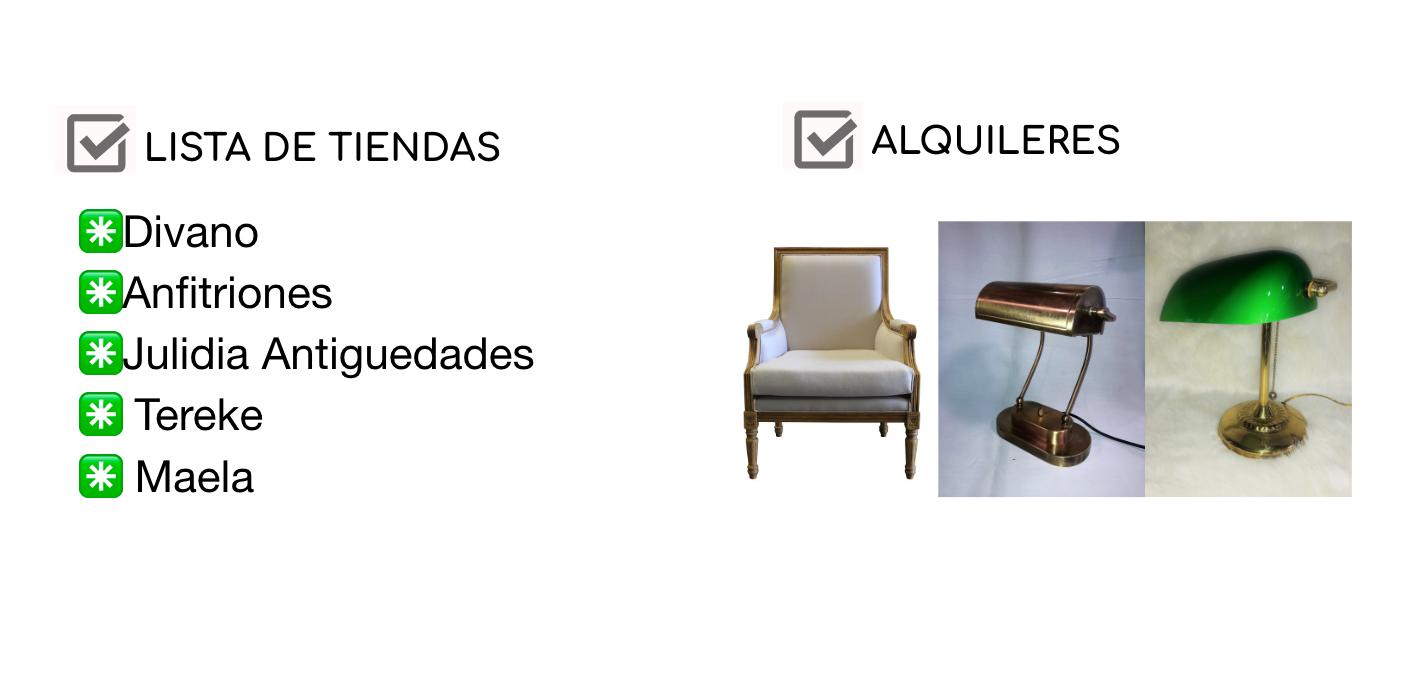 SUGIERE TIENDAS DE ACUERDO AL MOBILIARIO, DECORADO O ELEMENTOS QUE SE DEBEN BUSCAR.