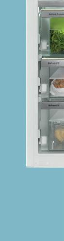 Nutzinhalt 296L, BioFresh mit HydroBreeze gibt Lebensmitteln den Extra-Kick für längere Haltbarkeit, Fruit & Vegetable-Safe, InfinitySpring: eine Quelle mit frischem, kühlem Trinkwasser in Ihrer Küche, dank SoftSystem schließt sich die Kühlschranktür gedämpft, LightTower, SmartSteel, SuperSilent.