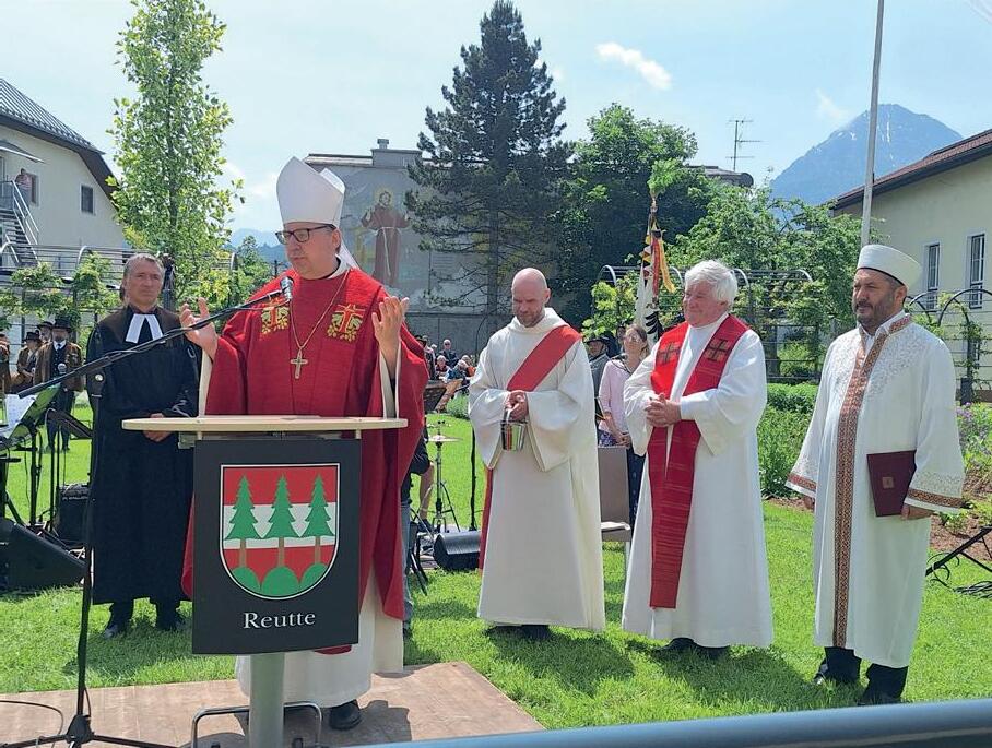 „Reutte hat keine Ortsmitte!“: Dieses Klagelied ist immer wieder zu hören. Doch das könnte sich mit dem Pfingstmontag geändert haben: Unter großer Anteilnahme der Bevölkerung und mit viel Begeisterung wurde da der neue Klostergarten im Rahmen einer interreligiösen Zeremonie von Bischof Hermann Glettler geweiht und soll nun zum im doppelten Sinne des Wortes „blühenden“ Treffpunkt aller Reuttener werden.