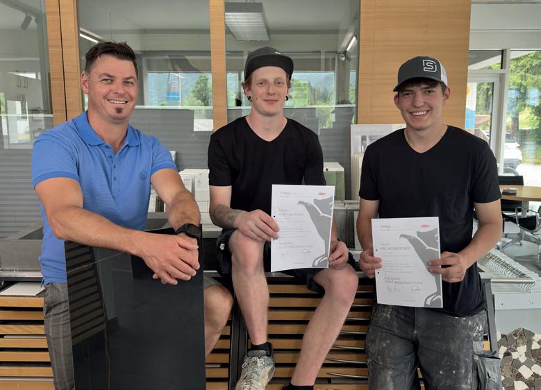 Tirol. Die beiden Jungs sind im zweiten Lehrjahr als Fliesenund Plattenleger und sicherten sich mit 138 und 151 Punkten jeweils das silberne und goldene Leistungsabzeichen.