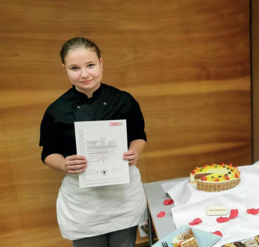 Süße Köstlichkeiten zauberte Annalena Luttinger im Rahmen ihrer Gesellenprüfung. Und das mit Erfolg. Die Jungkonditorin darf sich über ihren bestandenen Abschluss freuen. Auch das Team des Café Valier in Reutte, rund um Melanie und Christoph Valier, gratulieren ihrer Mitarbeiterin herzlich.