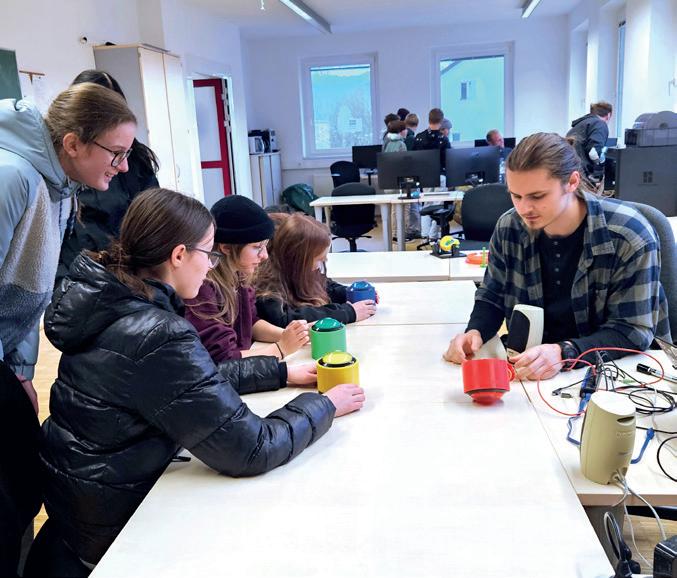 Breit gefächert waren auch die Aktivitäten im Rahmen des Tags der Technik: Im IKA vermochten Schüler der Polytechnischen Schule und des Gymnasiums bei Workshops, Technik hautnah zu erleben. In der Wirtschaftskammer konnte man über Projekte staunen, die im Rahmen der Ausbildung an IKA oder HTL verwirklicht wurden – wie etwa eine automatisierte Papierschneide- und Befüllungsmaschine für die Lebenshilfe in Lechaschau. Das Werkhaus hatte wiederum Technik-Erlebnisstationen aufgebaut. Und in der Elektroakademie konnte man einen höchst interessanten Blick hinter die Kulissen werfen. Spannende Einblicke in die Welt der KI gewährten mit Dominik Wörz und Mario Tuta zwei Experten aus dem Außerfern. Und schließlich konnten auch die Lehrkräfte einen Blick in die Zukunft werfen: Experte Horst Regber richtete den Blick auf aktuelle Trends im beruflichen Lernen.