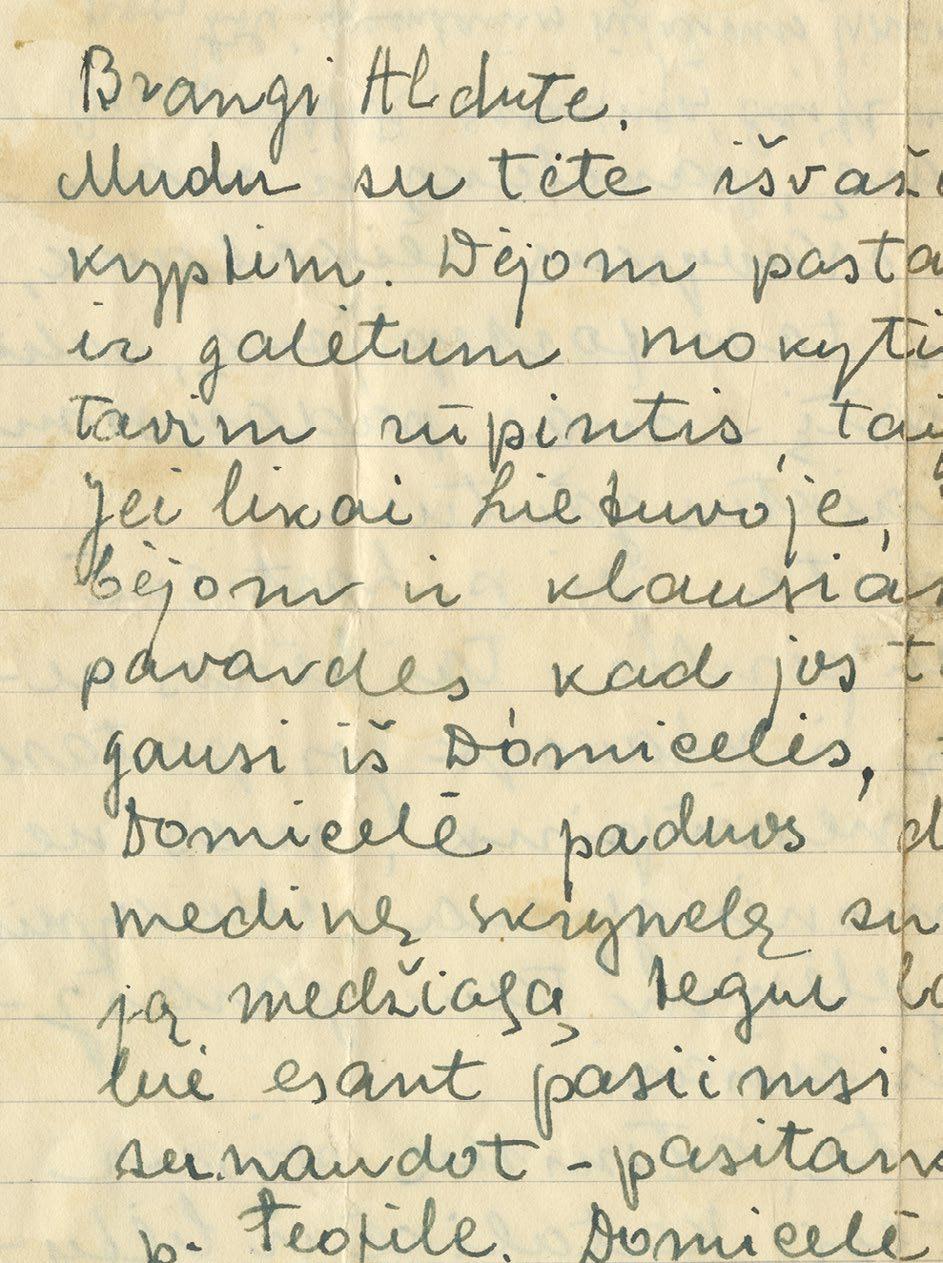Mudu su tėte išvažiuojam nežinoma kryptim. Dėjom pastangas, kad tu liktum ir galėtum mokytis. P. Lastienė žadėjo tavim rūpintis taip-pat ir p-lė