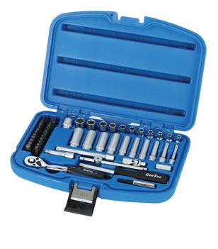 GeeTee 54-osainen hylsysarja 1/4" vääntiöllä. Kaikki osat Cr.Van terästä, pakattuna kestävään ja tyylikkääseen säilytyslaukkuun. GeeTee laatua!