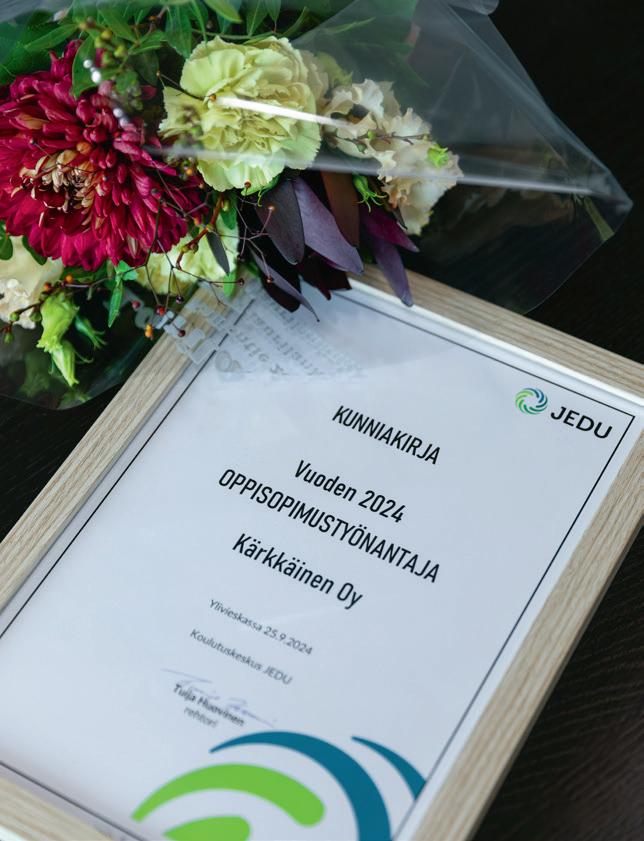 Jokilaaksojen koulutuskuntayhtymä JEDU valitsi Kärkkäinen Oy:n Vuoden 2024 Oppisopimustyönantajaksi.