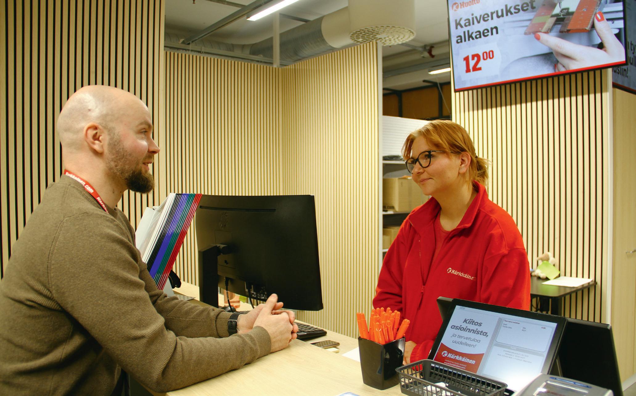 Lahden Kärkkäisellä on valtavien valikoimien lisäksi huikeita palveluita. Huoltokeskuksessa voi esimerkiksi teettää passikuvan, huollattaa polkupyörän tai vuokrata akkutyökaluja. Auto- ja konepuolella huolletaan autot, mönkijät, moottoripyörät ja -sahat. Tankinkin saa täyteen. Fresh!Burgerin kotiruokalounas on yksi työpäivieni kohokohdista, luettelee tammikuussa myymäläpäällikkönä aloittanut Miika Kallio muutamia esimerkkejä Lahden Kärkkäisen palveluista. Hangossa syntyneen, 41-vuotiaan Miikan perhe muutti reilut 30 vuotta sitten Lahteen. Päijät-Häme oli tuttua seutua. Miikan vanhemmat ovat kotoisin Artjärveltä, nykyisestä Orimattilasta, jossa perheellä oli kesämökki. Miika asuu Lahdessa avopuolisonsa ja bedlingtoninterrieri-Bellan kanssa. Kesämökkimatkaa hänellä on kolmisenkymmentä kilometriä Kouvolan suuntaan.